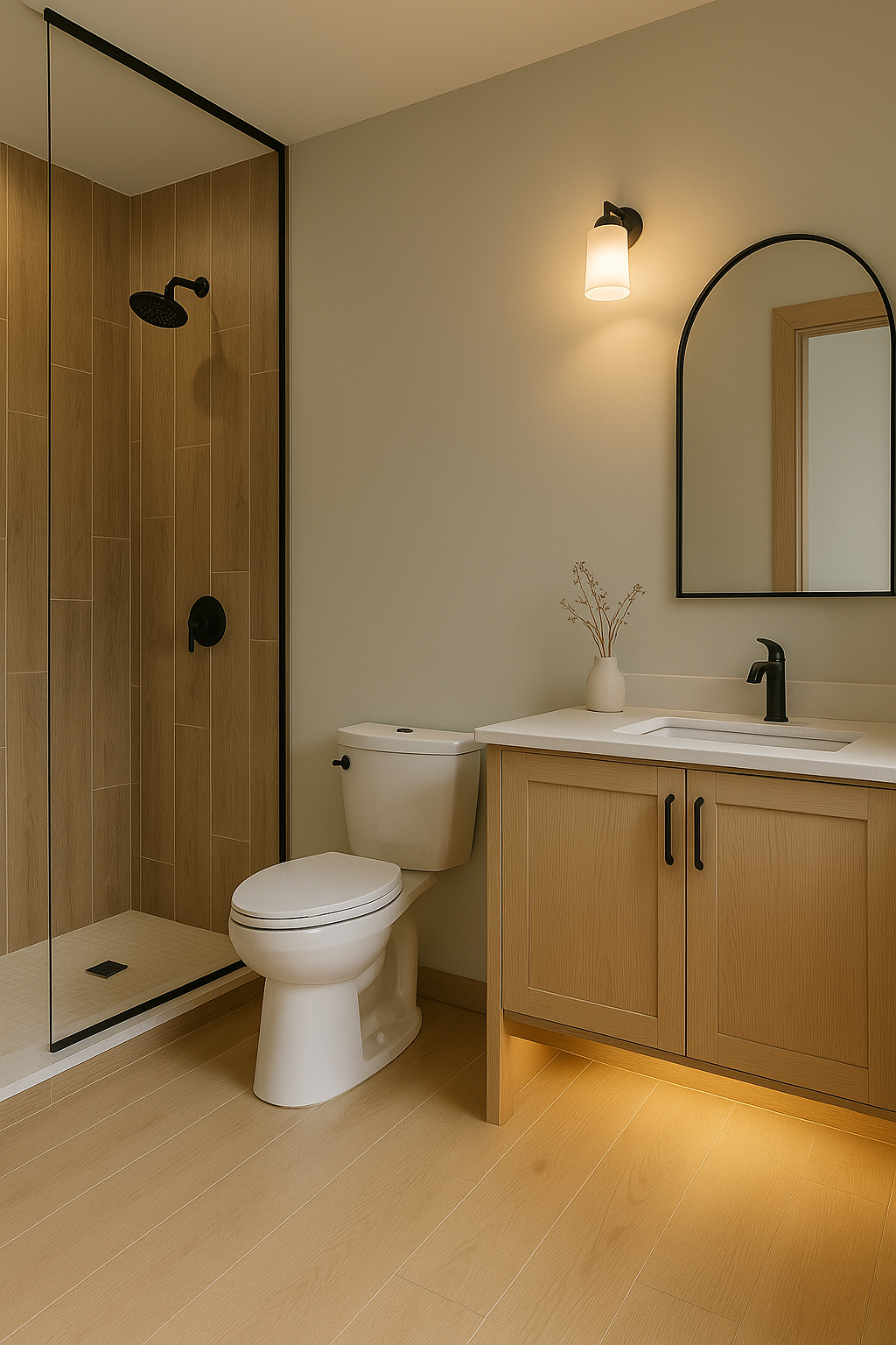 recreate this exact same image but lower the light sconce on the left of the mirror by 1
