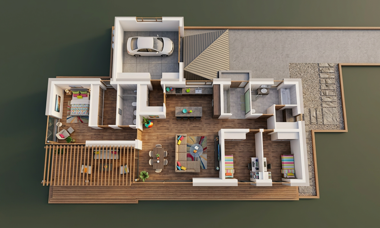 photorealistic scandinavian wooden house based strictly on the provided sketch preserve the exact geometry proportions roof shape window placement and camera angle no changes allowed maintain the exact number of window panes and muntins window grids exactly as in the input image facade white horizontal wooden panel freshly painted with fully opaque white paint clean and well maintained finish rain gutters and downspouts painted white metal matching the facade front door solid white door clean and newly painted consistent with scandinavian style lighting soft natural daylight with slightly warm tones realistic shadows and global illumination like a high end real estate photograph windows realistic glass reflections with visible interior details such as warm lighting and subtle furniture silhouettes environment landscaped garden with green lawn trimmed hedge decorative stones and a natural stone or gravel pathway add tasteful exterior elements such as outdoor lighting planters and minimal decoration to enhance realism without altering the building materials highly detailed physically accurate textures with subtle natural imperfections style ultra realistic architectural photography sharp focus hdr 4k quality negative constraints no redesign no added or removed architectural elements no change in perspective no distortion no alteration of window design