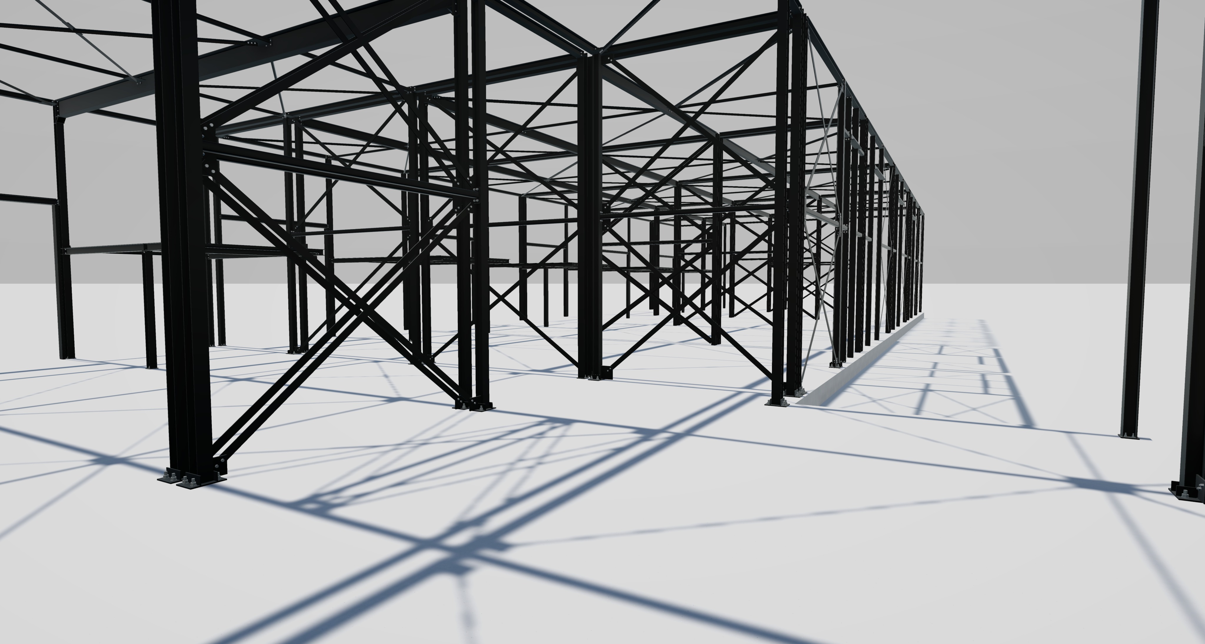 maak hier een realistische foto van alsof je in de staalconstructie staat