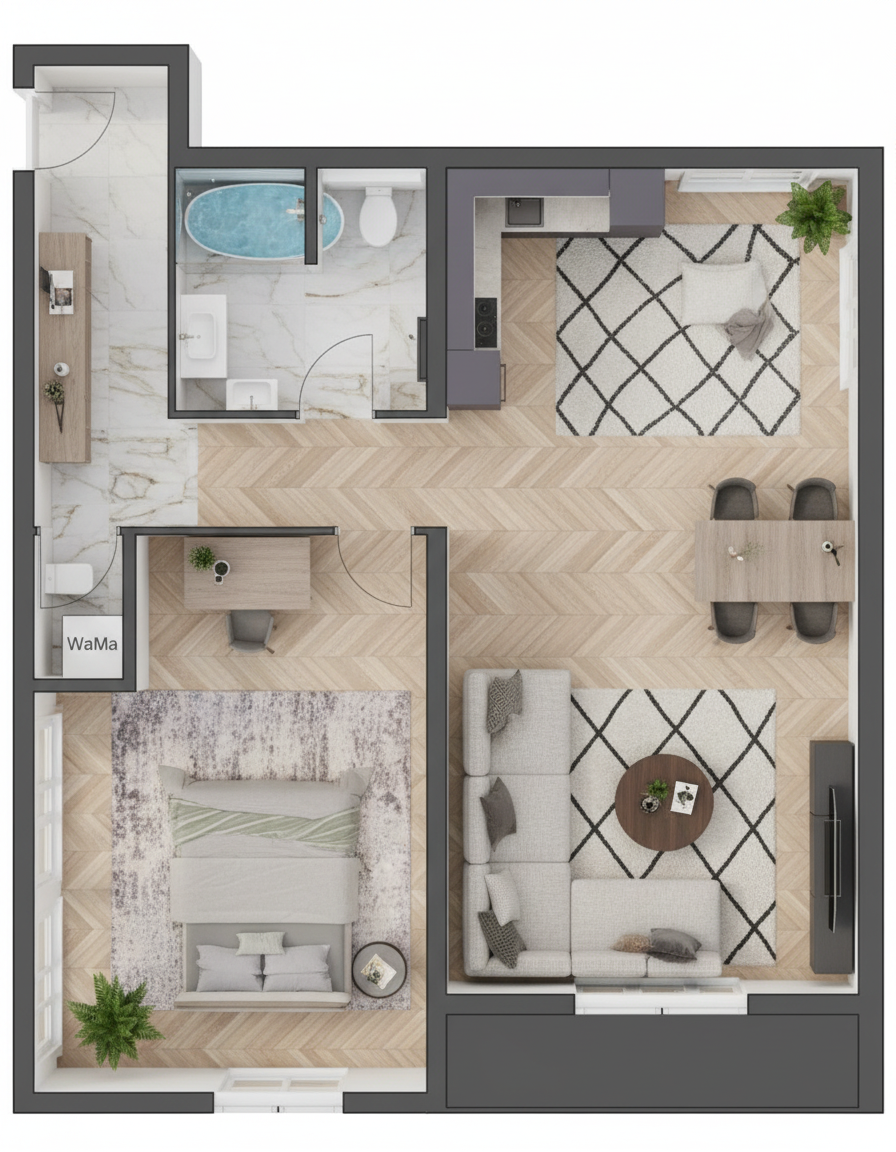 generate a photorealistic close up of a corner of the bar using an orthogonal parallel perspective no perspective distortion focus entirely on the bar and its details do not show any other parts of the room include only the intersection of the bar with the floor if visible preserve all materials shapes proportions and textures exactly as in the reference image highlight tactile quality stitching grain metal patina and layered materials with soft cinematic lighting use a neutral or minimal background to isolate the bar and emphasize its craftsmanship elegance and luxury minor vignette framing is allowed to focus attention on the corner and surfaces do not alter design or materials