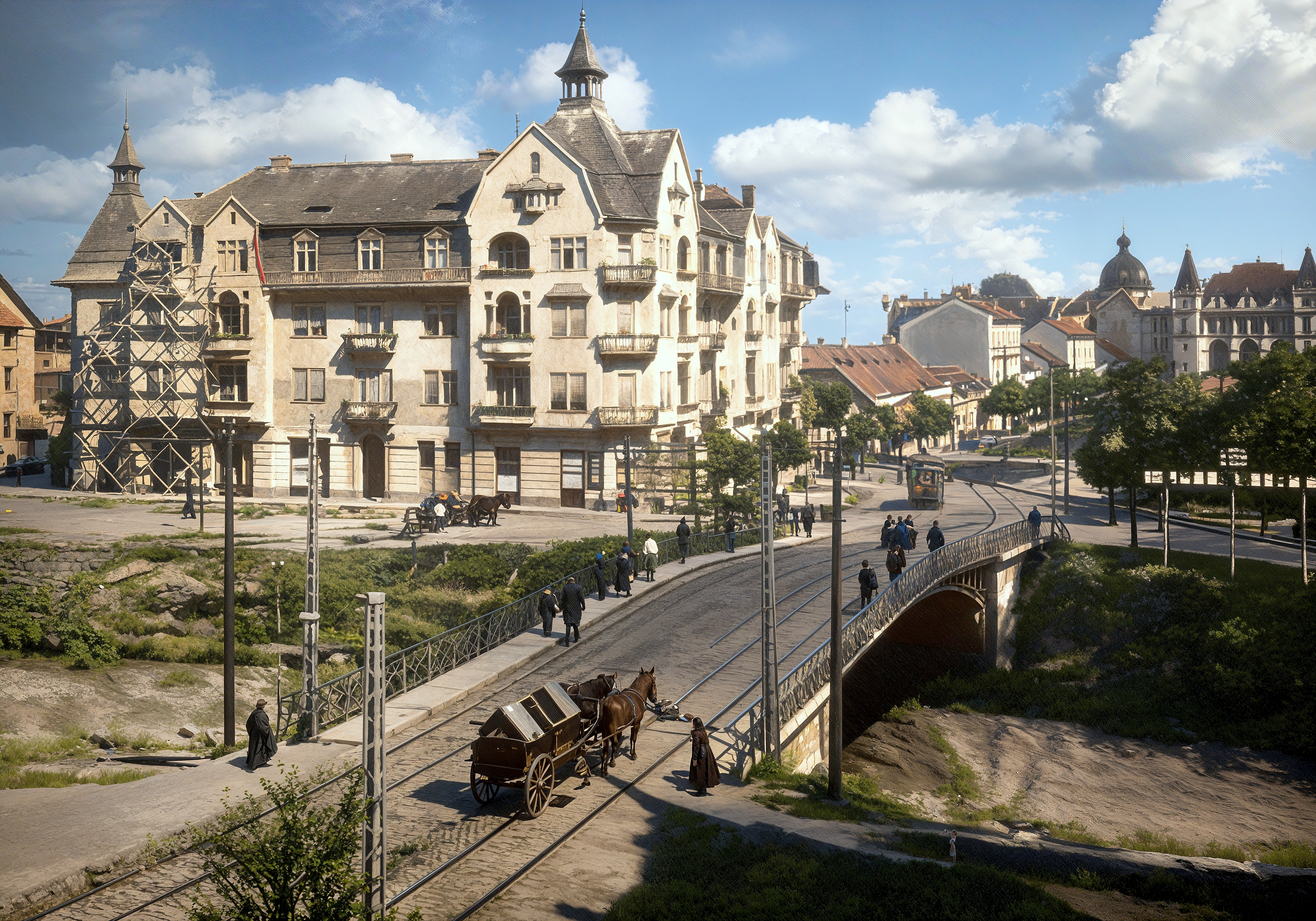 1900 s style atmosphere beautyful clouds clear high picture exposure stucco fassade enhanced details color cinematic hyperrealistic view
