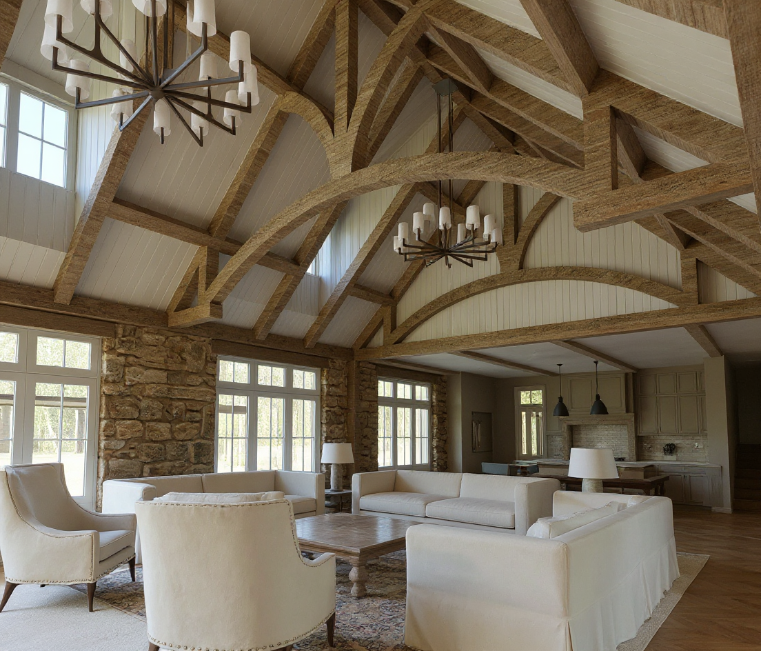 equestrian modern french country kitchen grasscloth ceiling taupe cabinetry left wall is panel front fridges keep architecture same as reference image