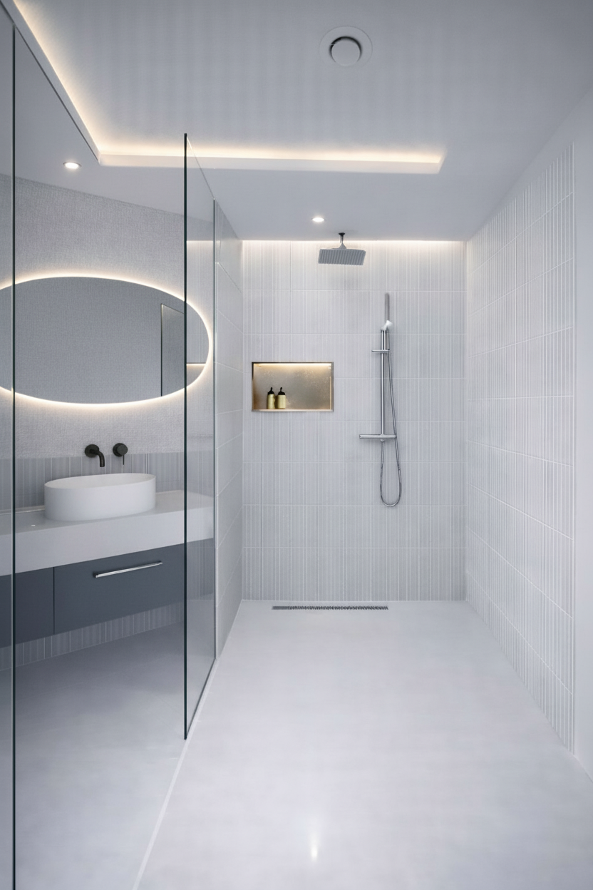 everything that is grey in the image is wood tone the vanity drawers shelves are white
