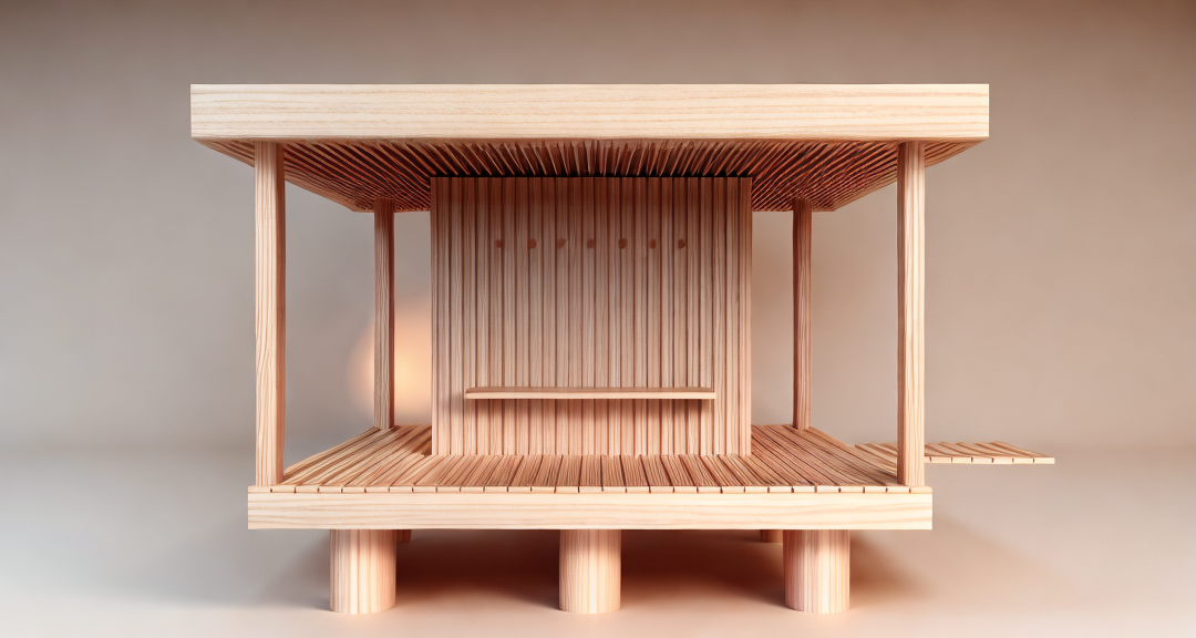 interior shot a beautiful simple architectural scale model made of light colored cedar wood the background is completely empty void