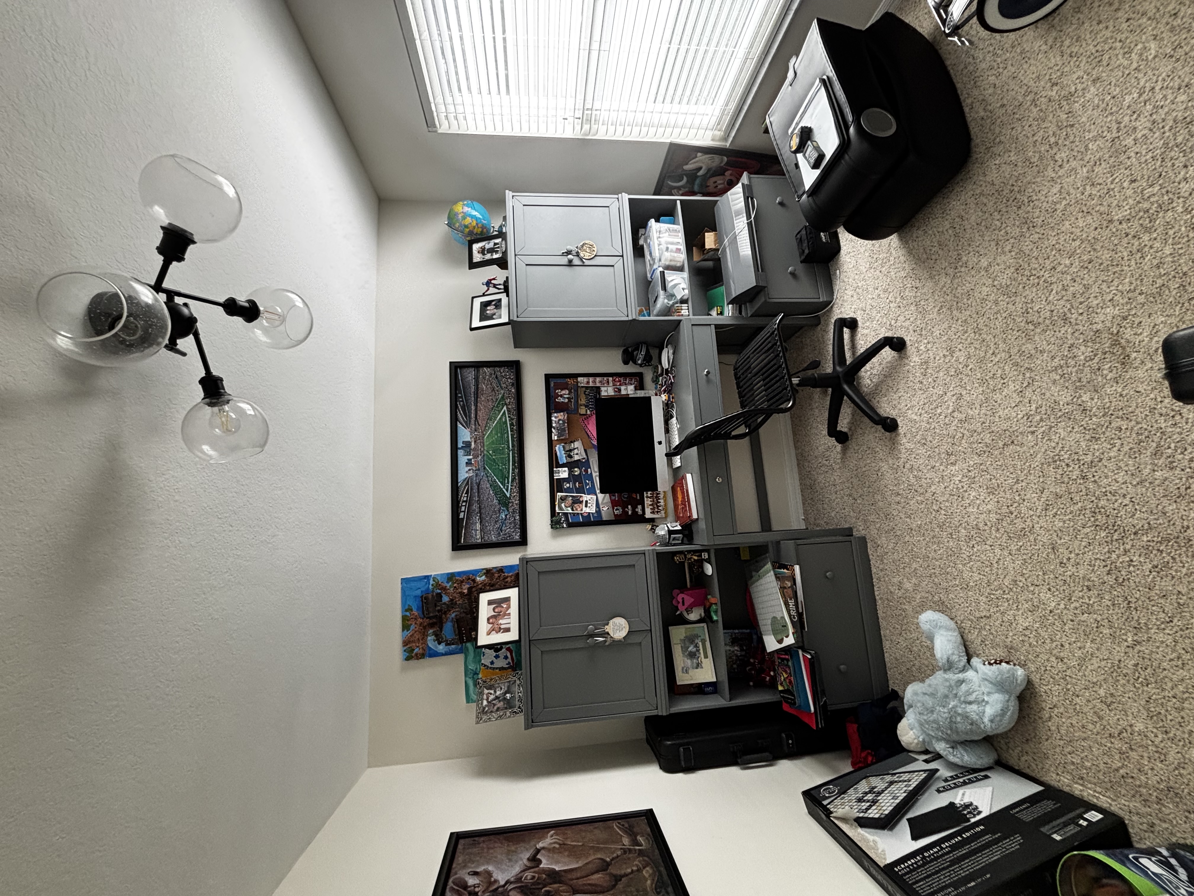todayfeb 4 2026 35 complete a moody rock n roll themed music room that is 10 x 10 feet walls ceilings and trim painted a graphite charcoal window has menswear plaid drapery panels 3 guitars are hung on one of the walls other walls show a gallery of 15 x 15 inch acrylic framed famous rock n roll record albums there is a leather small sofa a modern low console with tv above the room feels rock n roll