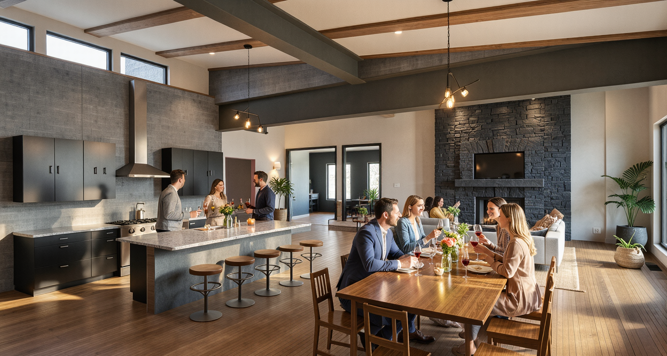 waterfall countertop on the island make dining table chairs high end furniture remove woman in the black dress