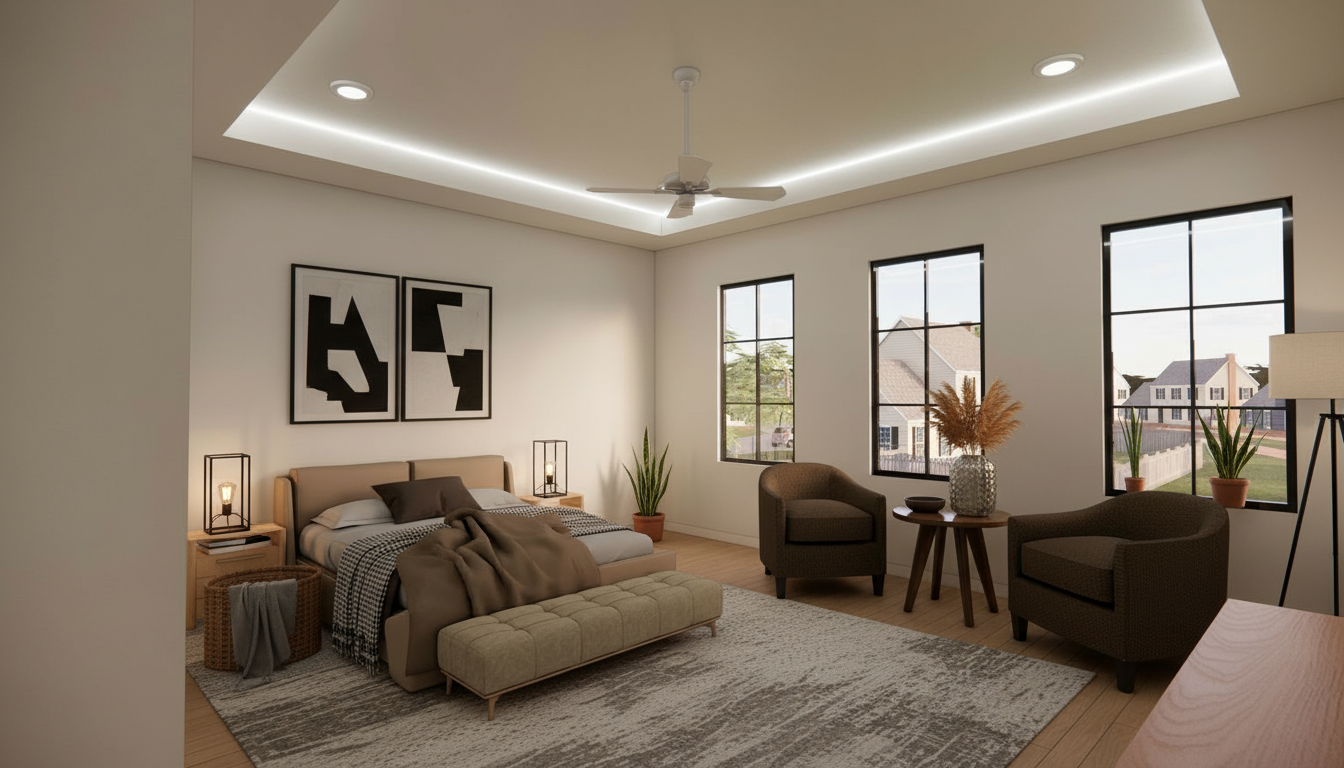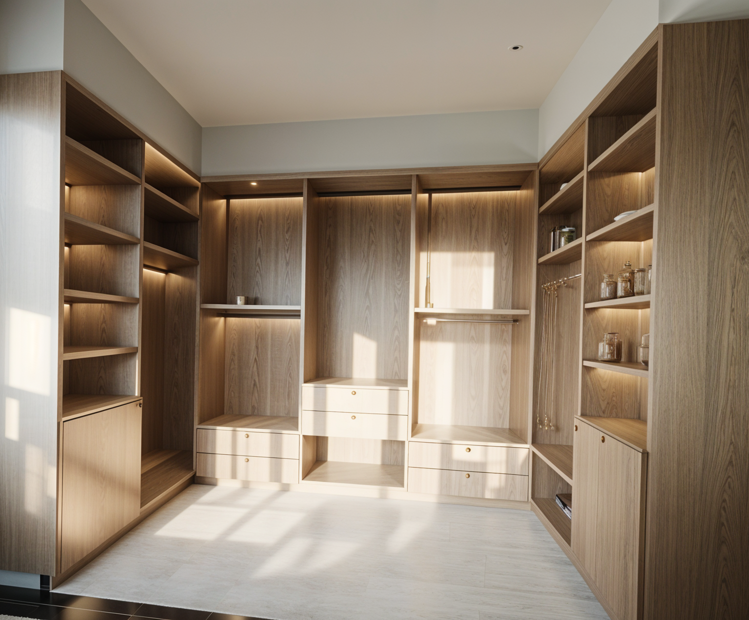 create a photo realistic render using this kitchen elevation include atmospheric lighting under the wall cabinets full width and under shelves lighting inside fluted glazed cupboards retain the materials used