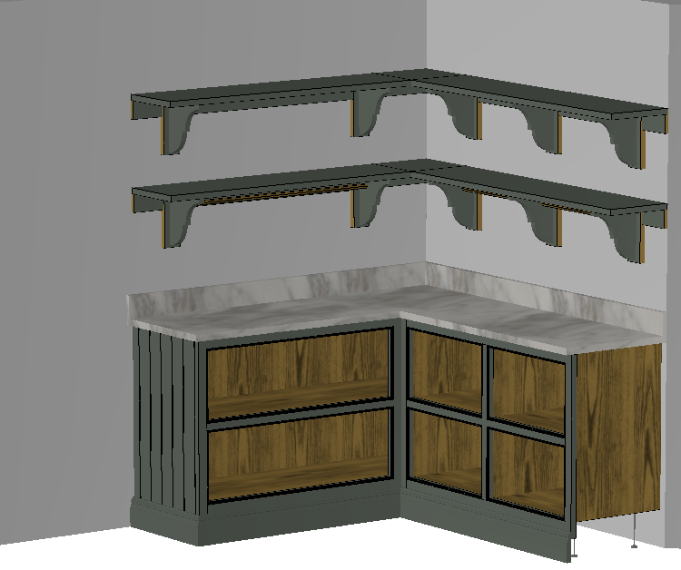 render lifelike 3d pantry maintain colours wood texture to be natural oak colour natural oak sections as open with kitchen accessories on