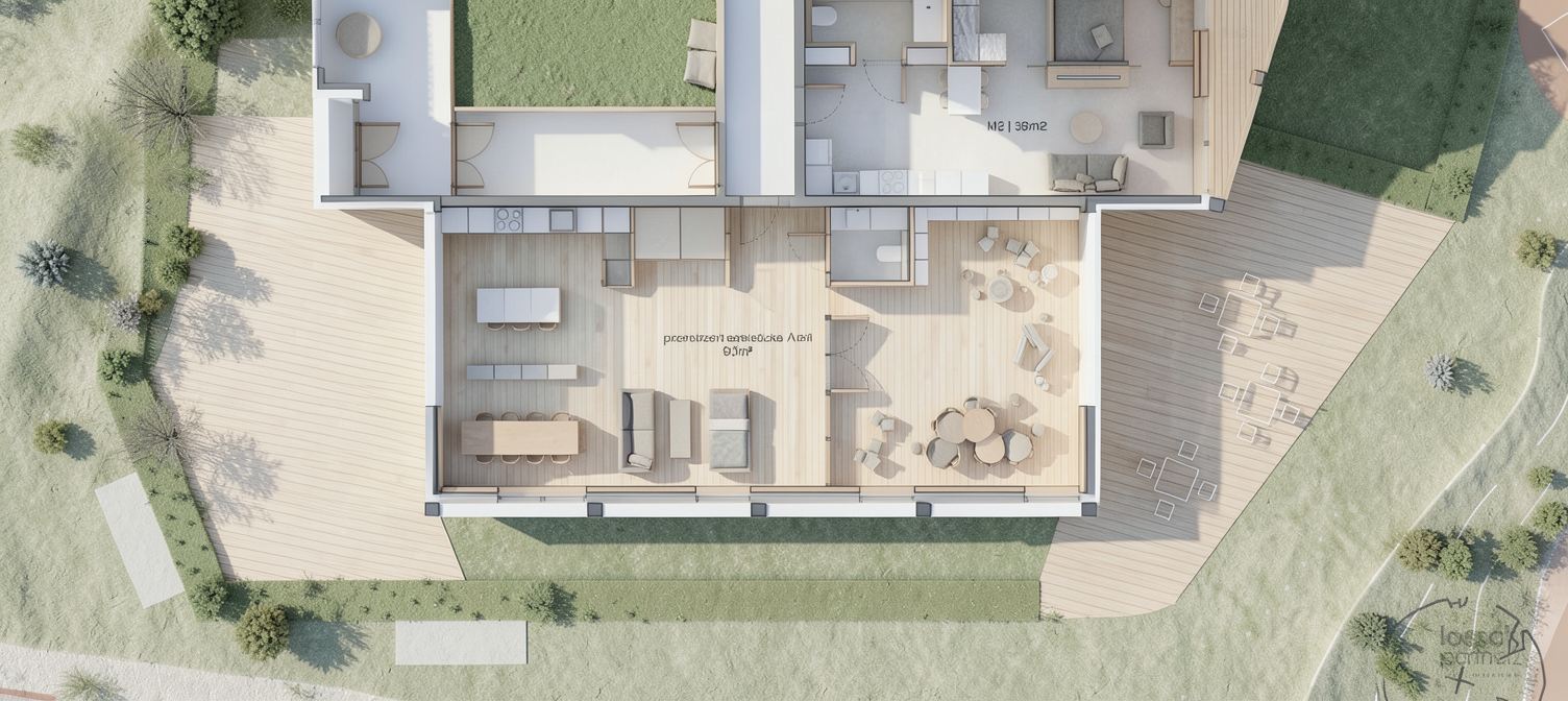 create a detailed landscape rendering of a property map with rolling green fields dense green forests winding pathways and serene reflective blue ponds highlight the borders with a crisp red line for clarity capture the essence of a warm sunny day with soft natural lighting to enhance the vibrant green hues and the gentle blues add subtle textures to the fields and trees for a lush appearance and use a light neutral backdrop to enhance the focus on the property details ensure a sense of peace and tranquility throughout the scene
