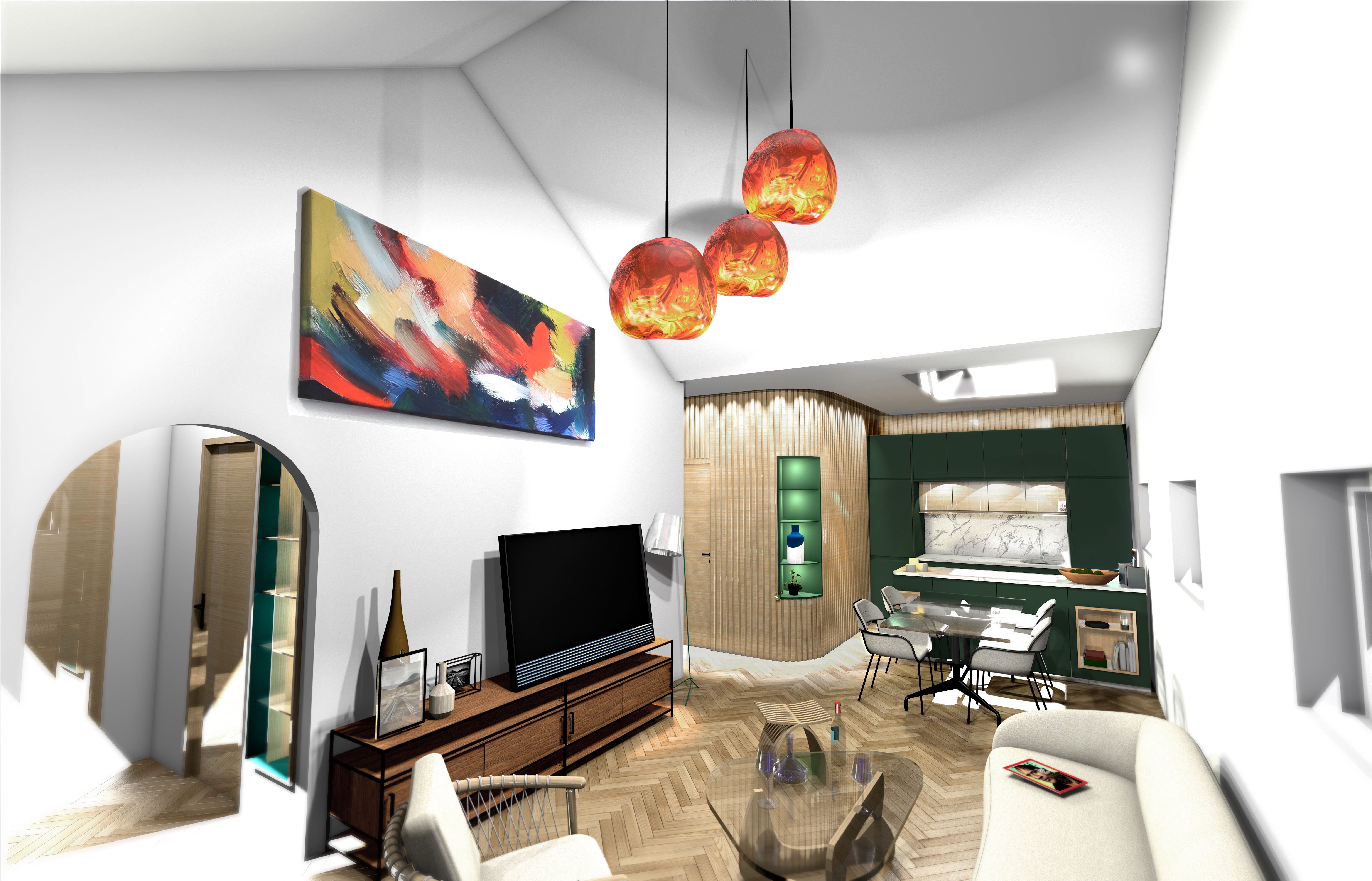 ajoute une personne en train de cuisiner et une personne assise dans le canap mets des livres dans les tag res de l image