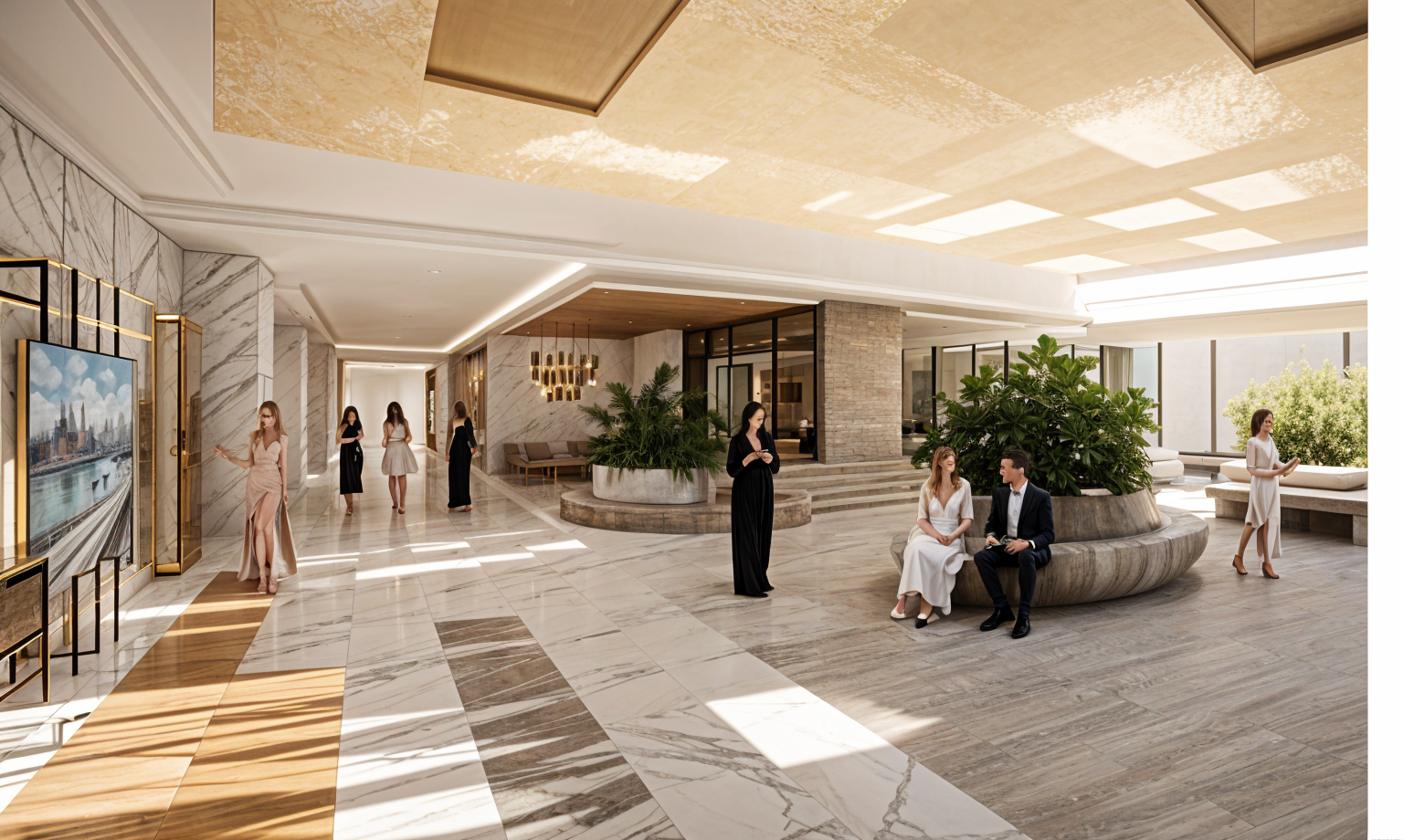 interior shot create a sophisticated living room scene with a luxurious atmosphere the room features elegant tufted white sofas with lavish plush pillows the grandiose turquoise chandelier is the centerpiece casting a soft glow the coffee tables have a sleek design with turquoise glass tops the lamps on the side tables are turquoise adding a pop of color the tall curtains are a combination of sheer white and deep brown fabrics enhancing the high ceiling effect wood paneled walls with a rich dark brown finish add warmth the flooring is a polished dark wood the overall mood is opulent and serene with a harmonious balance of neutral tones and striking turquoise accents
