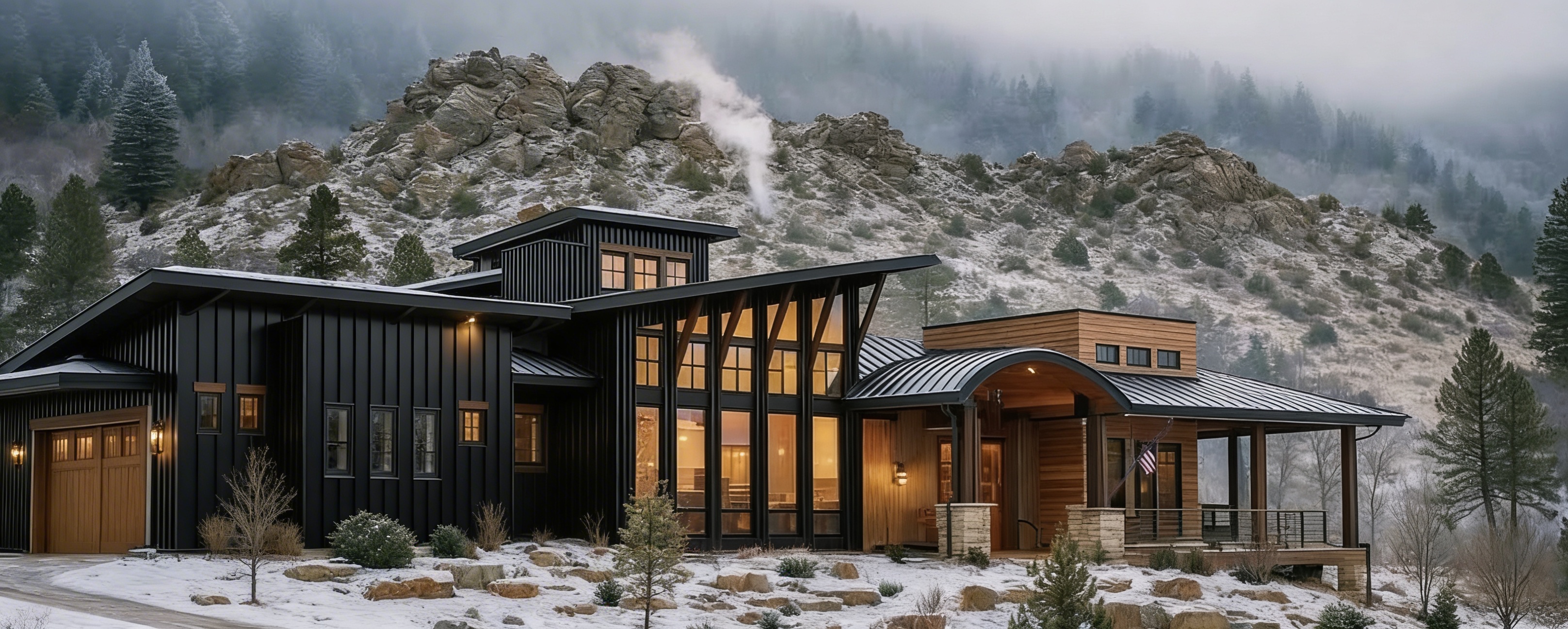 all windows in the front with no door siding to be vinyl sunny day with lots of landscaping in front of the house
