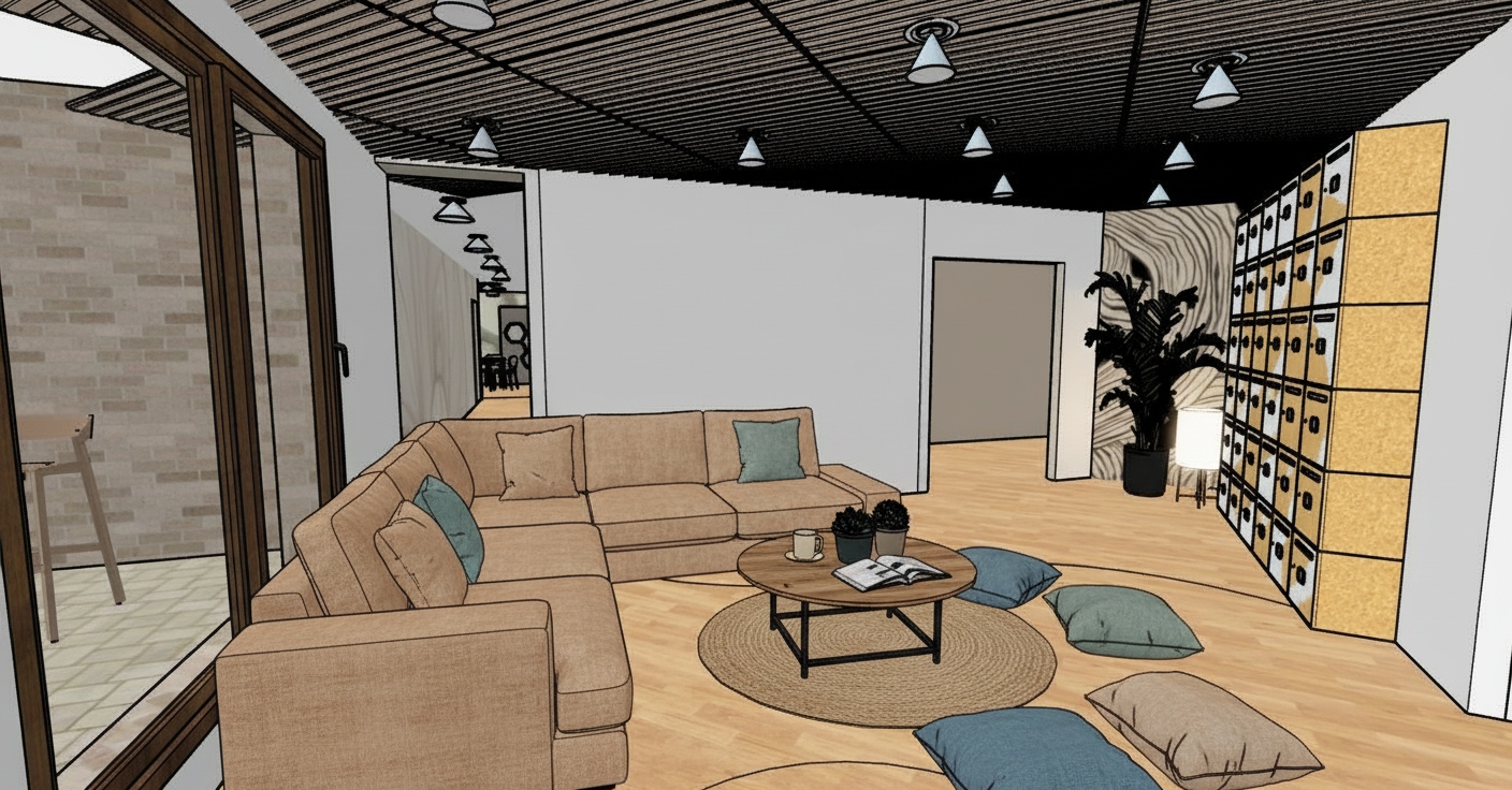 keep everything the same dont change anything just add a more neutral and light color for the tiles on the floor