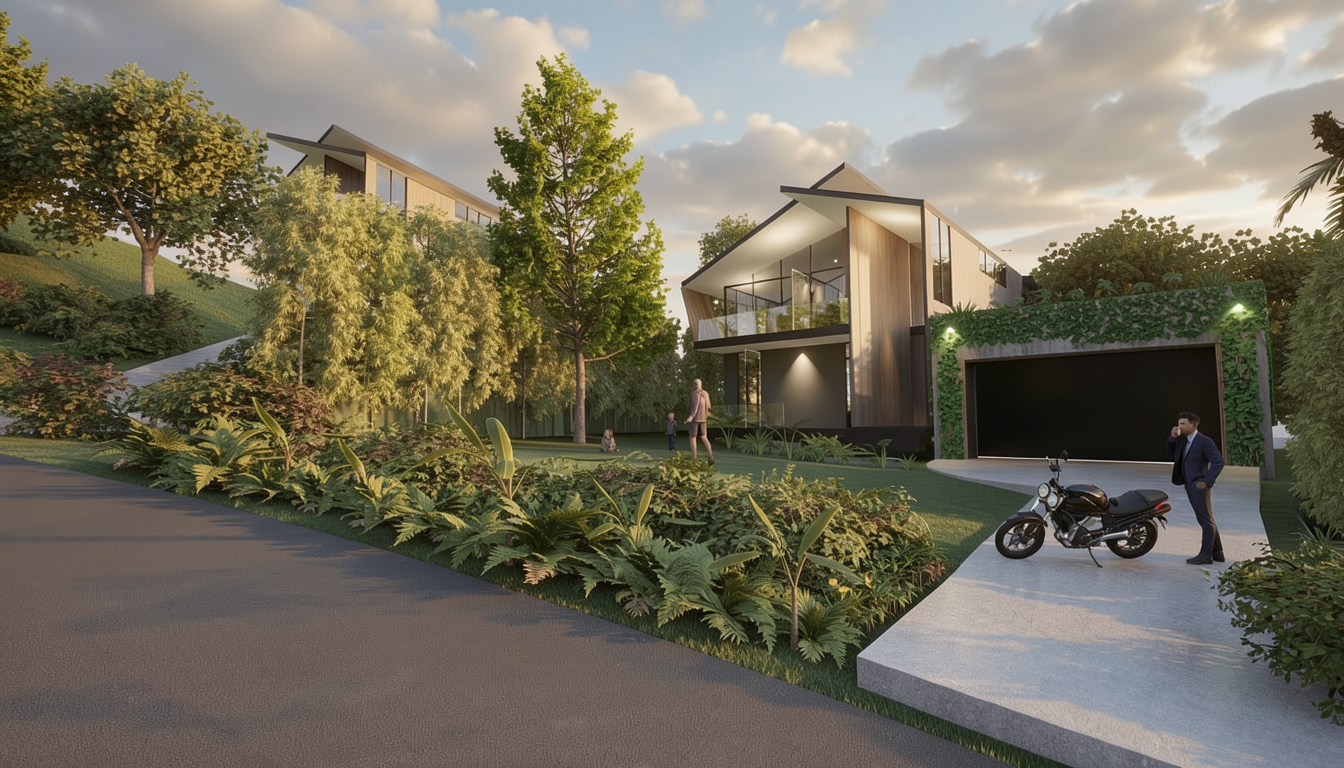 create a street kerb have the garage vegitation look more realistic