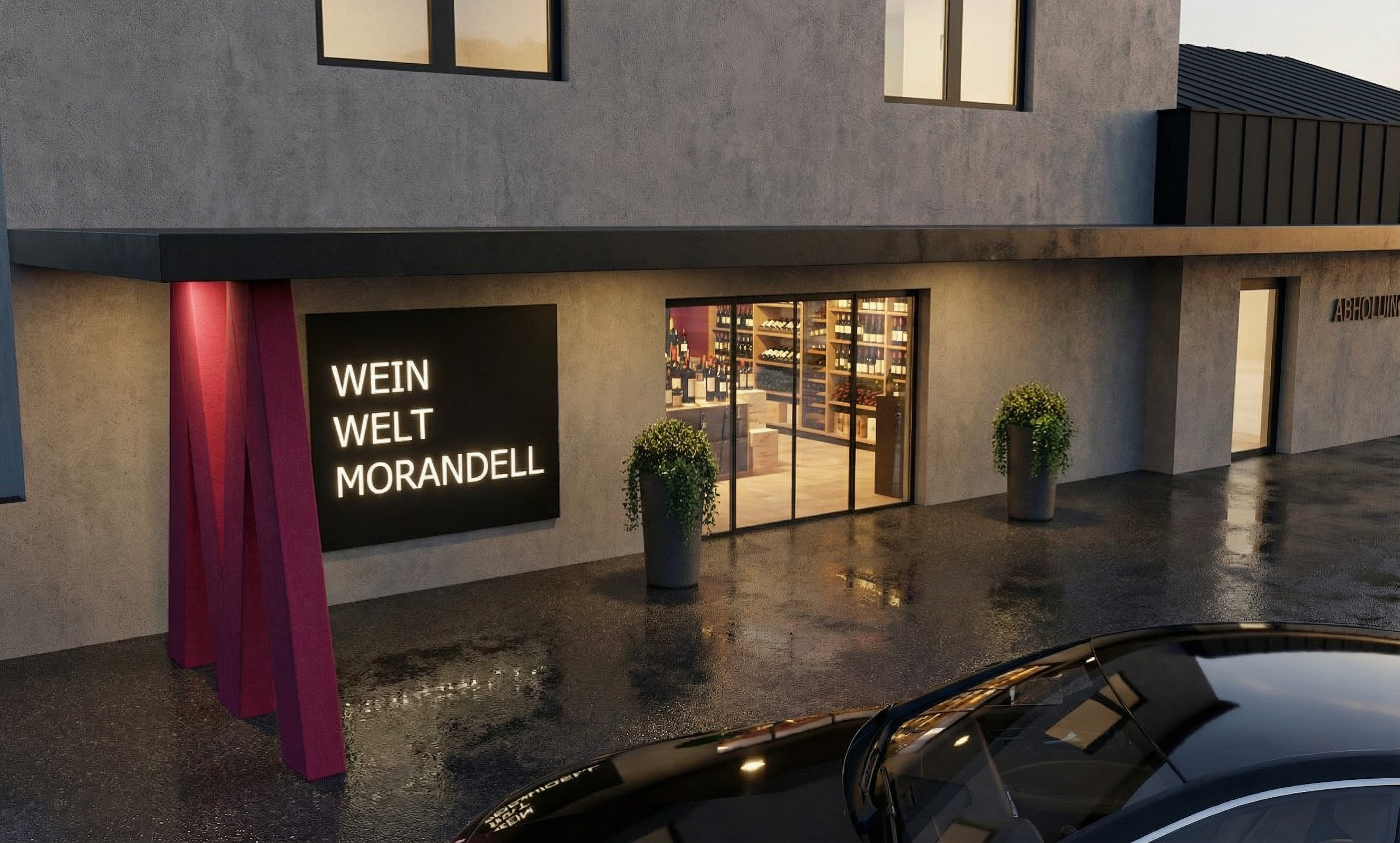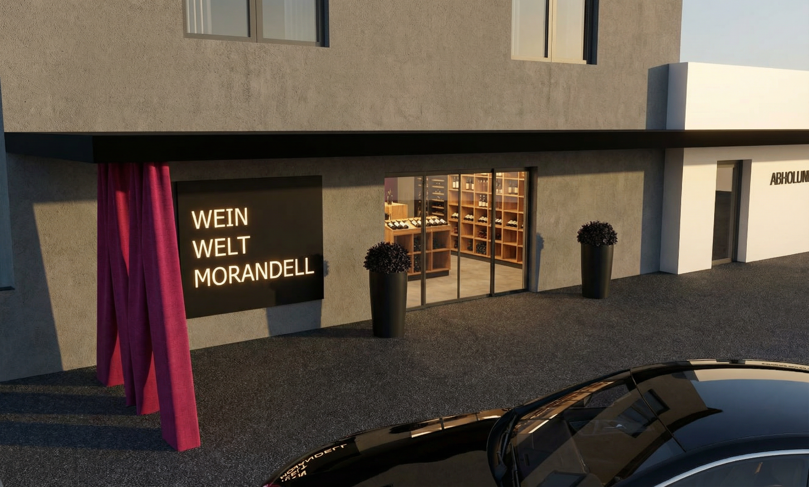 medium grey solid facade light up wein welt morandell asphalt black solid interior wine shop