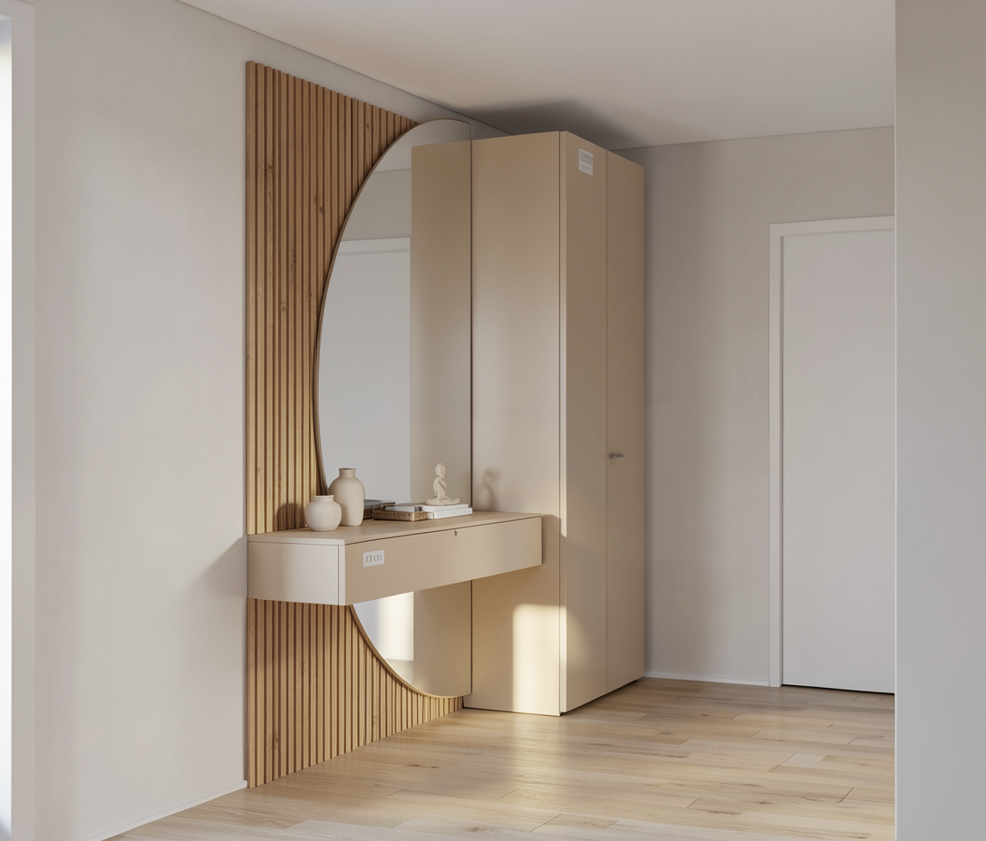 make it clearer that there is a mirror on the left side wall