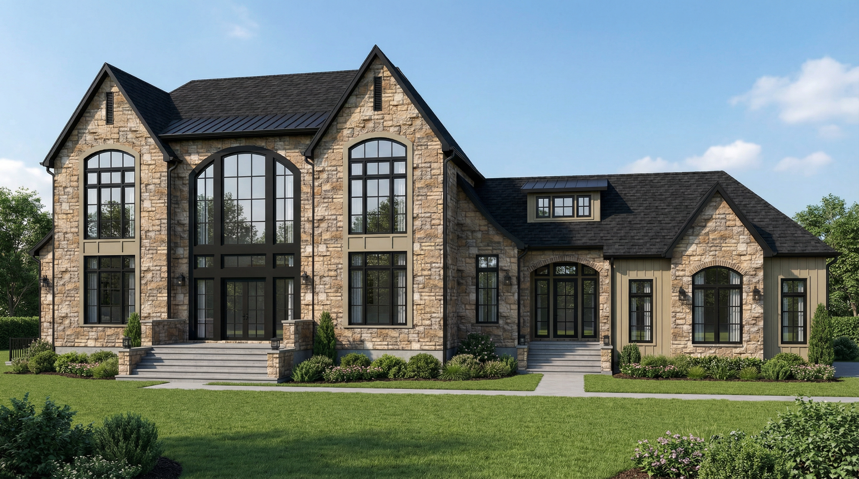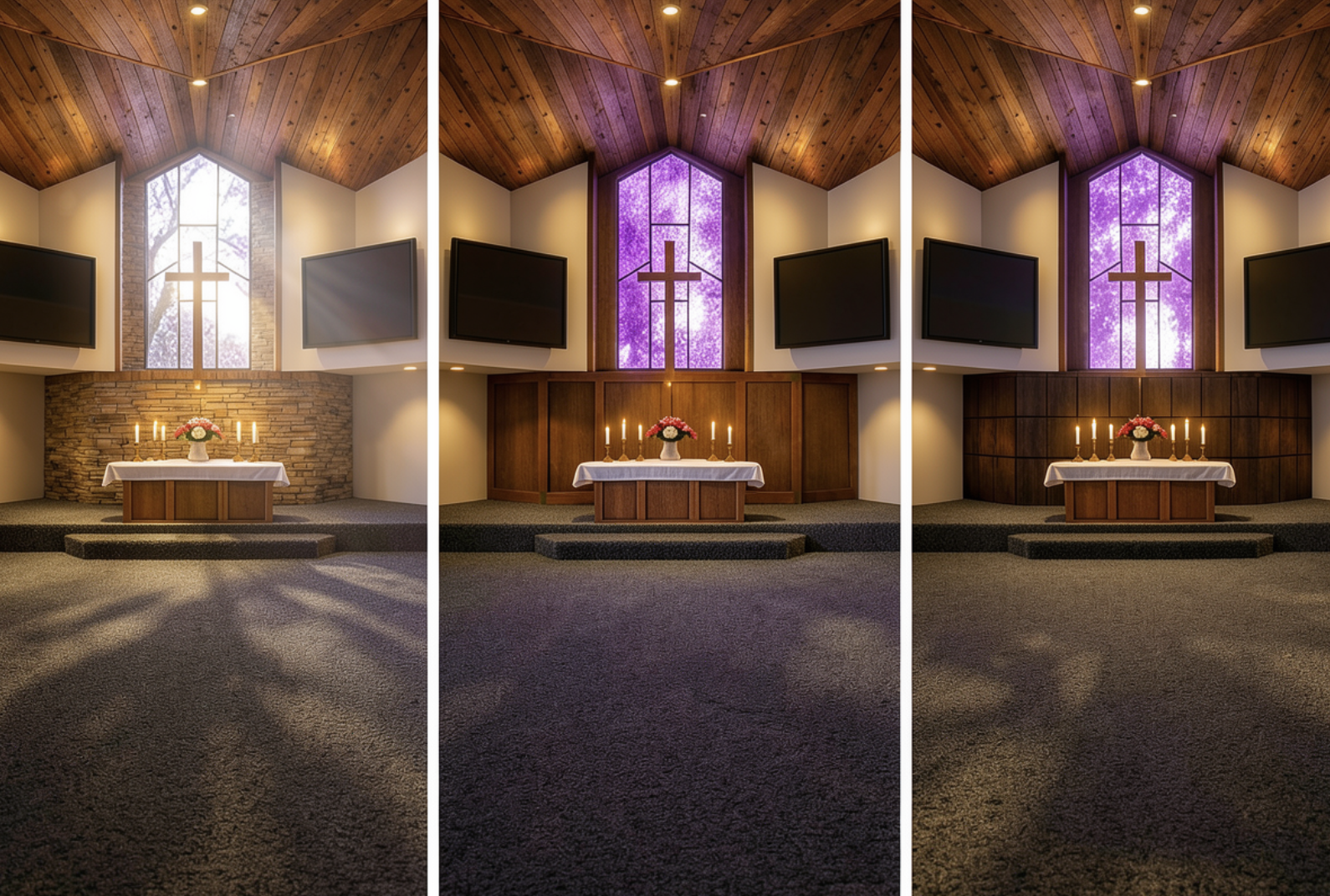 keep everything the exact same the only change is to have no trim around wondow have the walls left and right be flsuh and bump the stain glass window forward so everything is flush window runs inot the peak of the vault no drywall on top the ceiling should line up with the window peaks