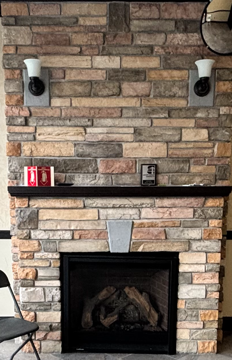 replace the sconces on their fireplace with the reference image below replace the mantle with a warm medium wood tone mantle appropriately scaled to the fireplace