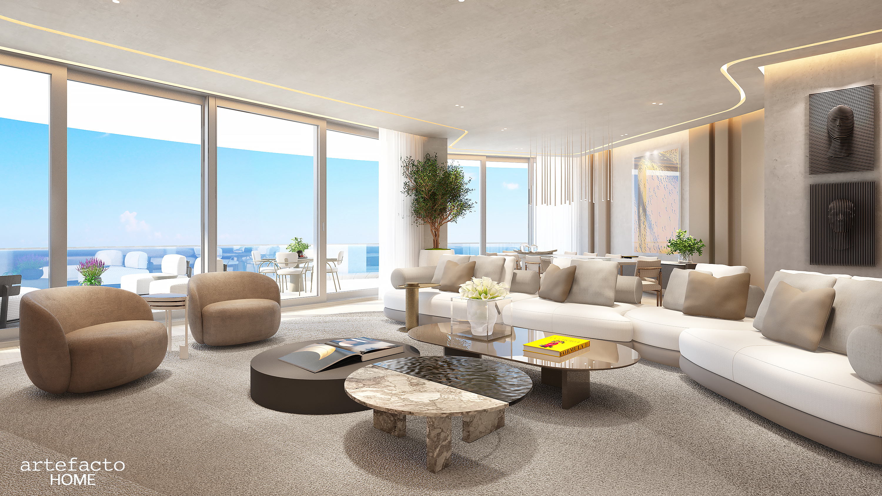 respetando la imagen sin modificar y sin variar los muebles existentes ni colores ni materiales y ni texturas de los objetos que ya existen crea y mejora la imagen con un ambiente calido y acogedo crear mejor nitidez resolucion de imagen y calidad de alta definicion de texturas y acabados en la imagen en la vista exterior dar un efecto fotorealista del paisaje cielo azul nubes proyectar sobre los objetos de la imagen luces y sombras con una ligera intensidad creando un efecto de volumen en el area de las ventanas crear un efecto leve de reflexion de los cristales las cortinas transl cidas con movimiento ligero equilibrio crom tico neutro perspectiva a nivel de ojo calidad ultra alta definici n render fotorrealista