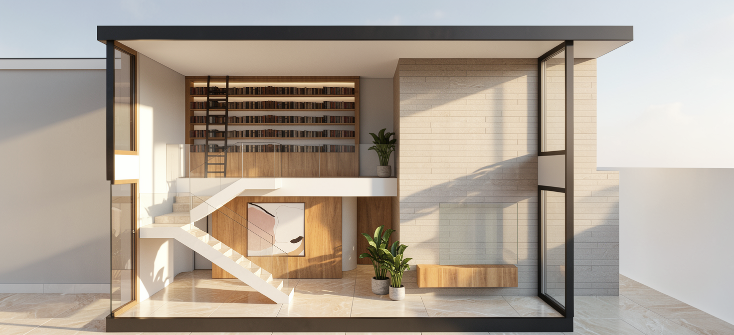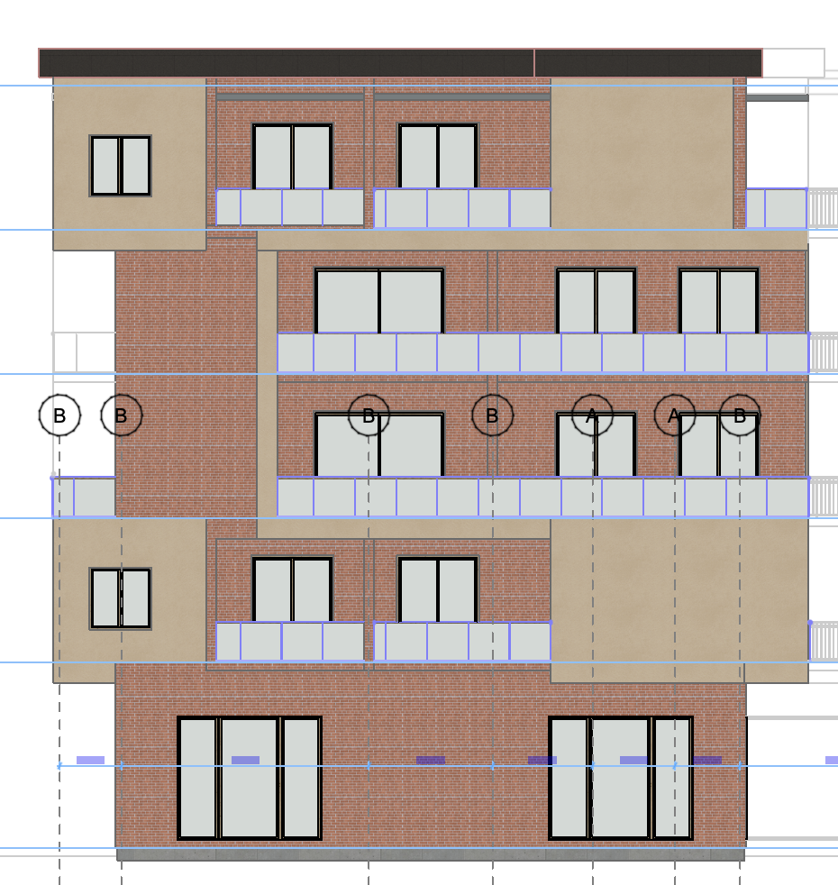 create a modern urban apartment building with a clean and sleek design use a mix of warm red brick and soft sandy beige for the exterior walls giving a classic and welcoming touch the windows are large and framed in deep black enhancing the building s modern aesthetic imagine expansive balconies lined with sleek glass railings the atmosphere is bright and airy capturing a sunny day casting gentle shadows on the building highlighting its textures and contours this setting should feel vibrant yet peaceful evoking a sense of community and urban sophistication