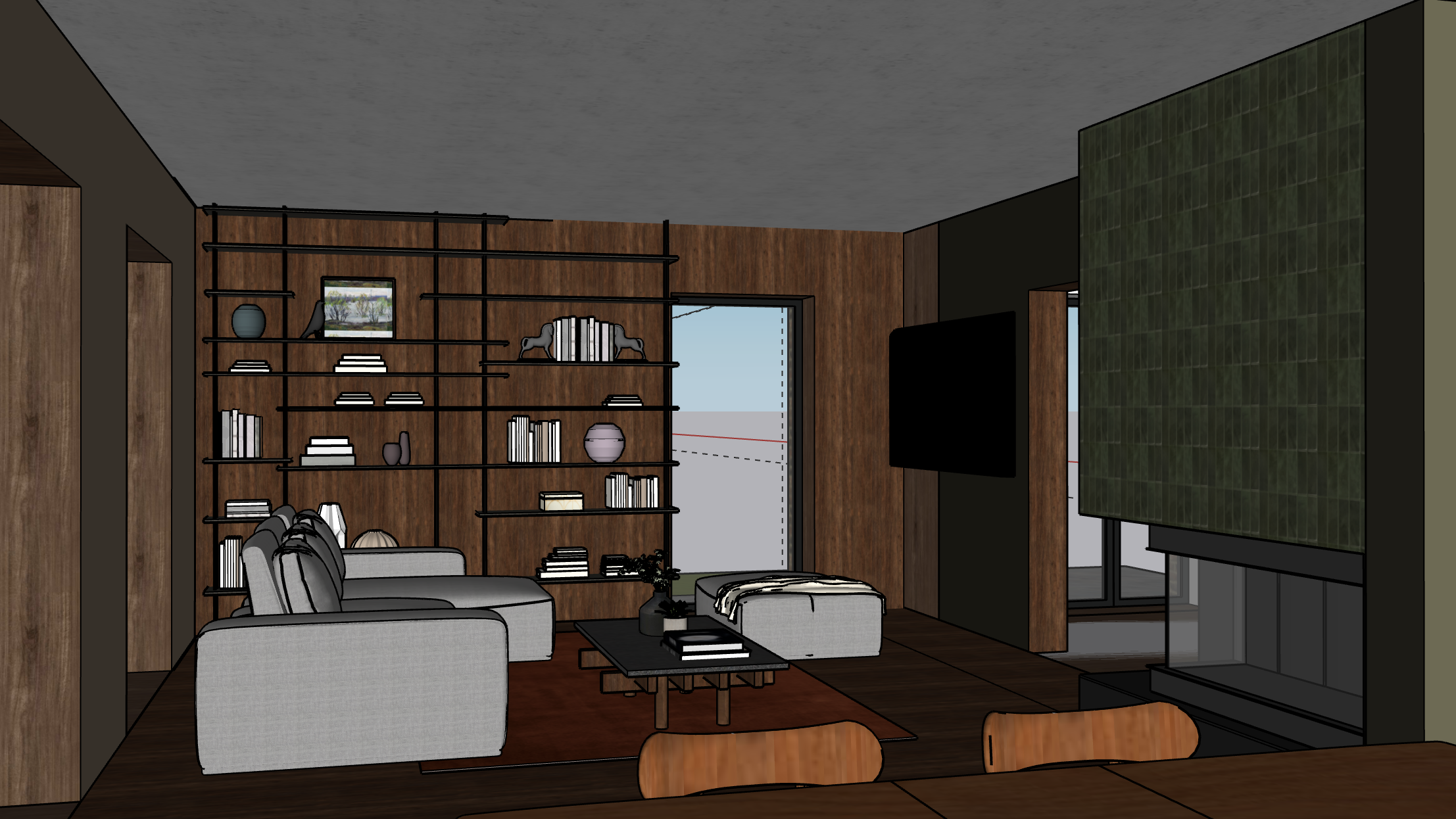 makegreen tiles brick red color glossy finish other walls remain wood finish