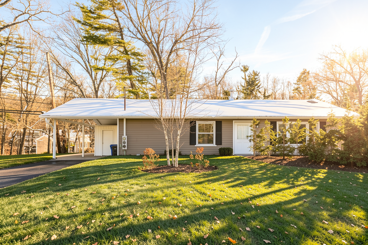 front of house showing driveway alongside it to the left and a prety small front garden do not add a second story or a garage