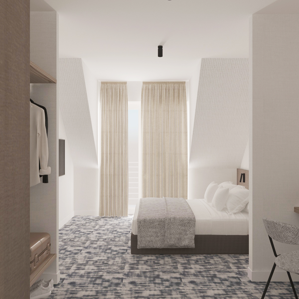 make this render better more accurate materials and soft artificial lighting from the ceiling add soft sunlight and make curtains more flattered