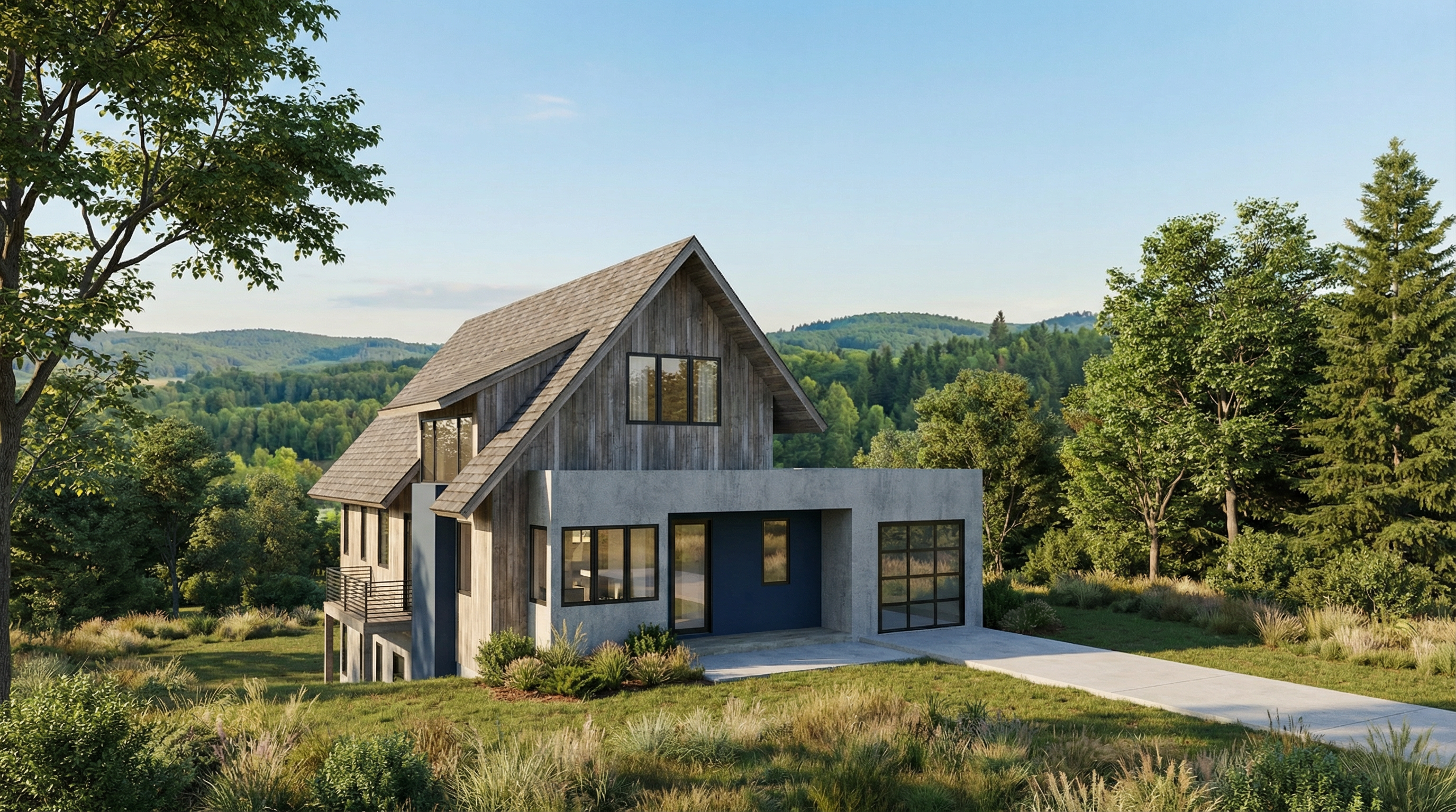luxury workspace on the 6th floor of a building located in an urban environment 6 workstations minimal style concrete floors white plaster walls exposed concrete ceilings warm natural realistic lighting incorporate an architectural element or surface that is rough in texture stone brick or chiseled concrete etc