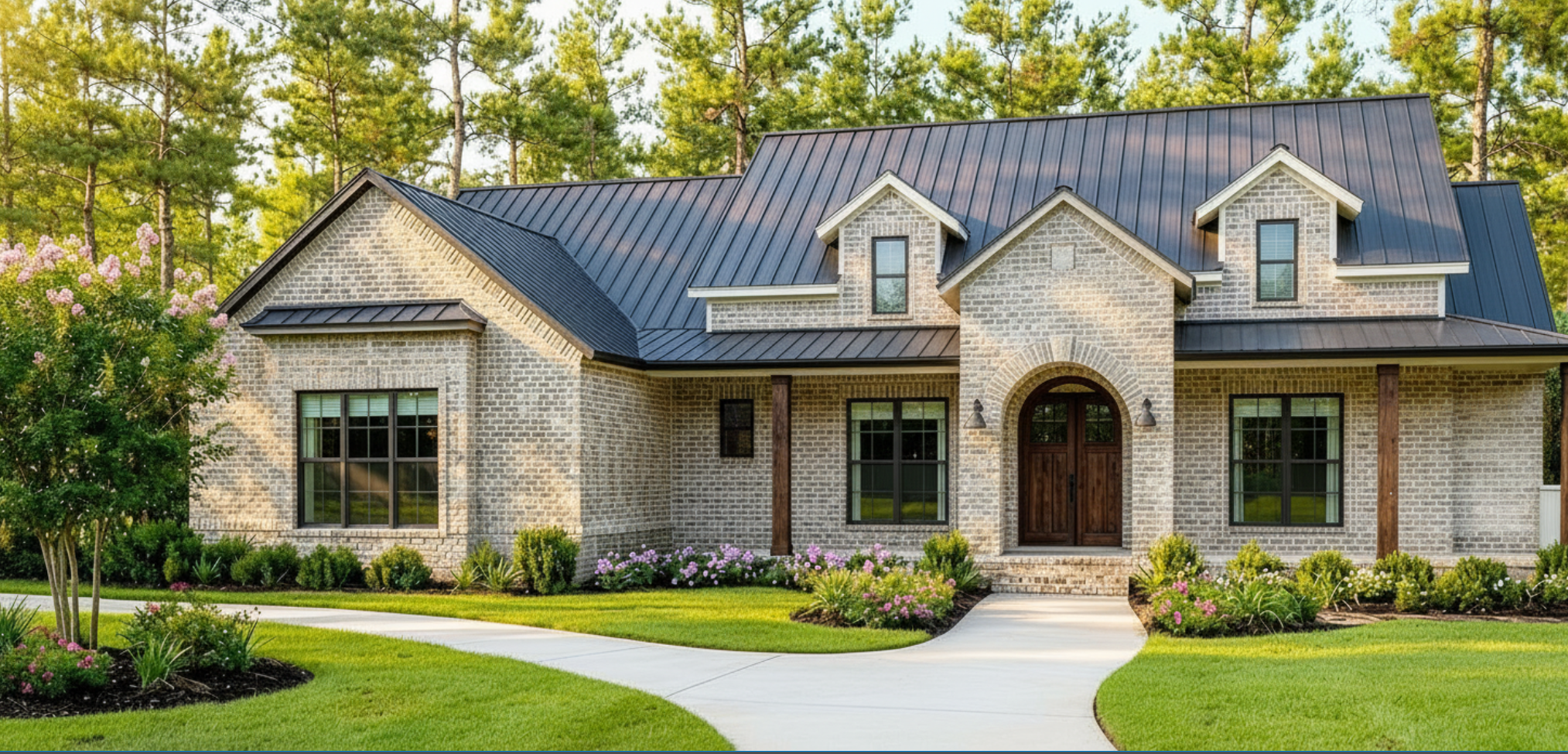 change the wood columns to brick columns the brick columns should be the same color of the existing brick color used on the exterior of the home