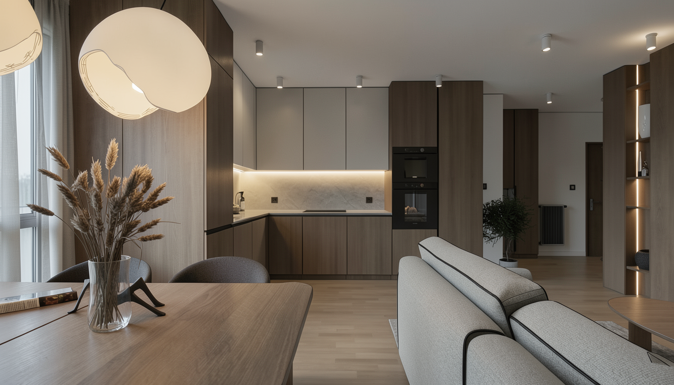 show a dark grey dimensional shingle roof dark grey corbels and dark grey horizonal wood shutter at the entry dark grey banding under the roof line base of house is painted white stucco the garage doors are staggered and each has a hip roof that protrudes beyond the front entry dark grey dappled paver sidewalk from entry doors sweeping to right side of home tropical landscape with blue sky and fair weather clouds