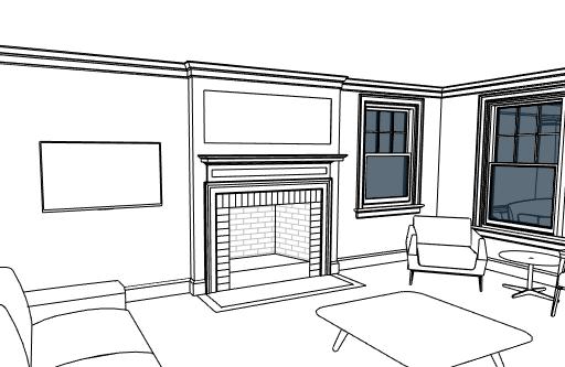 colonial revival interior shot cozy simple classical lake house white wood floor architecture