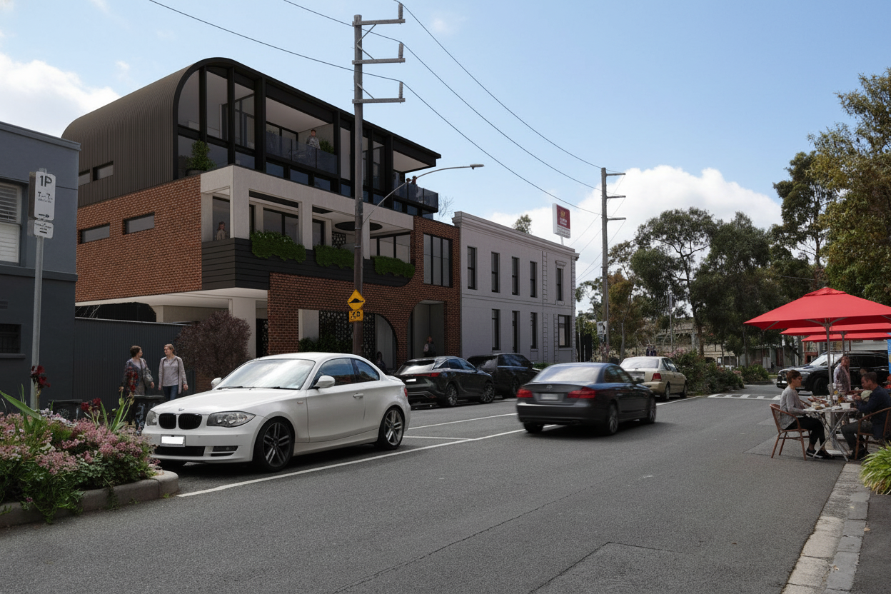 classical exterior shot in an australian rural setting at sunset with a lush green garden external colour pallette of white and soft grey architecture