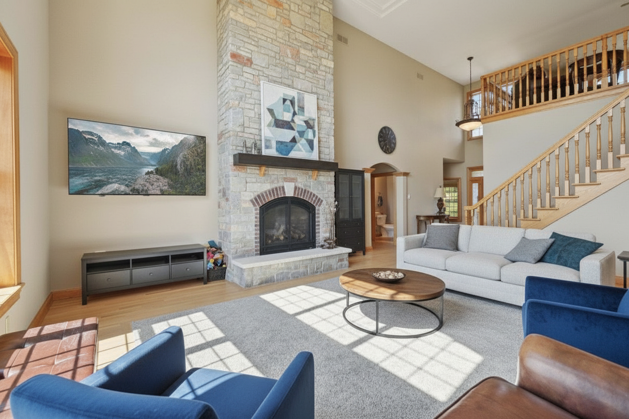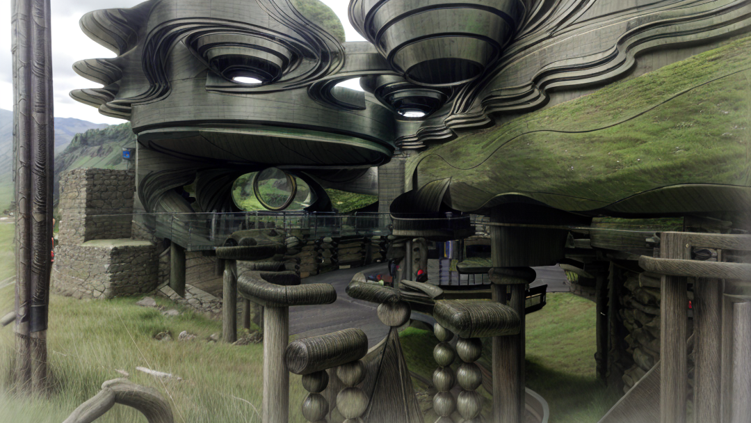 wide the view and enhance detail smooth the face of the sone and add land scaping left and right have more depth add more sun and smoothe shade
