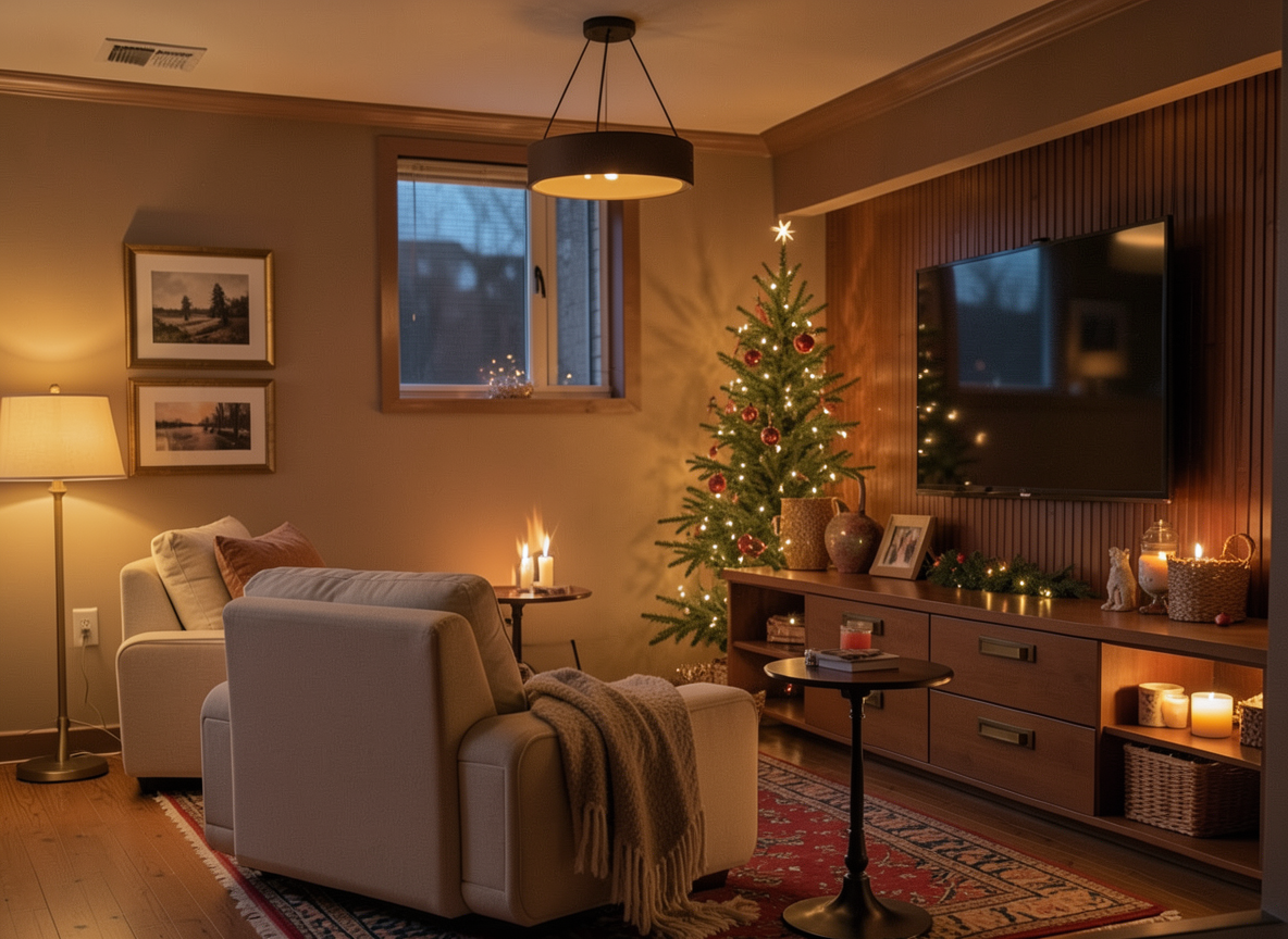 make it a cozy movie night ceiling is same colour as walls