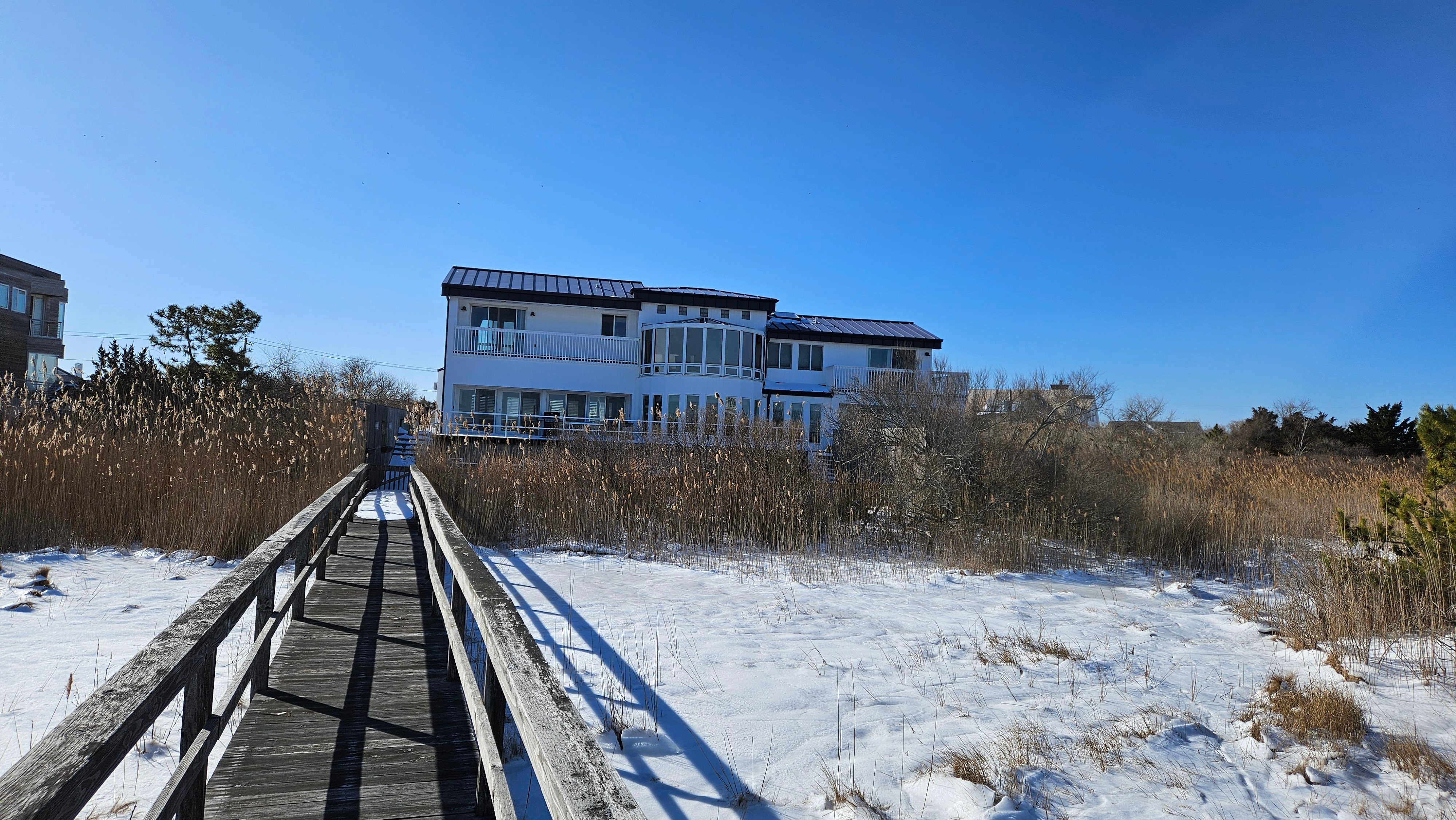 transitional architecture black windows sunset lighting cinematic shot cable wire railing