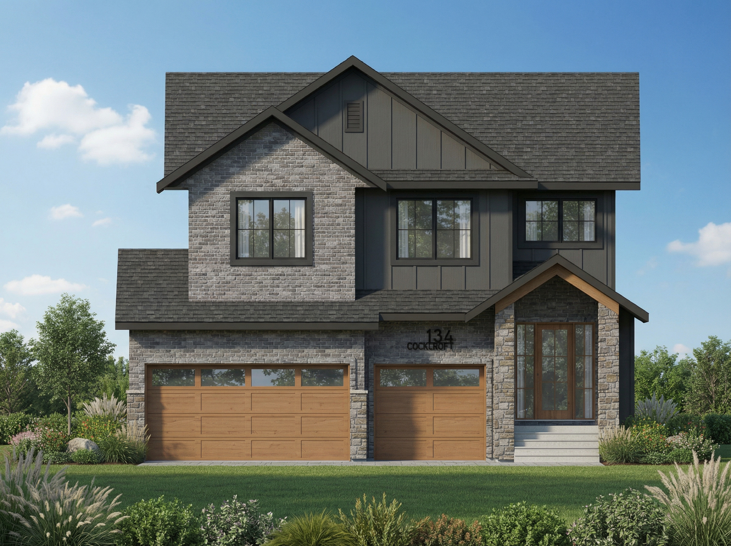 the area above the garage that is stone covered remove the stone and add more of the grey siding in its place