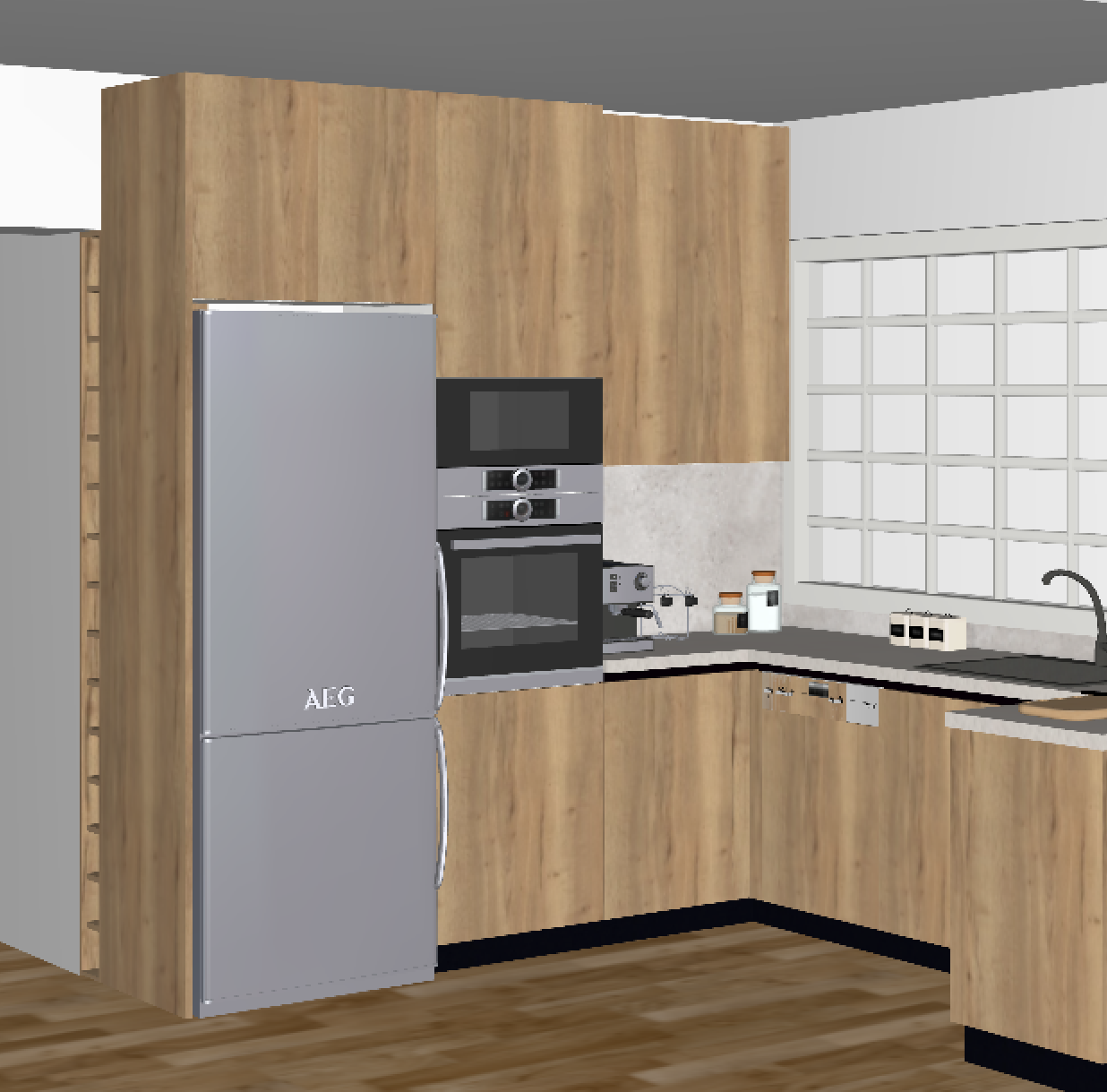 just a 3d render add some lights keep the colours as it is turn the colour of the worktop to be the same as the tiles