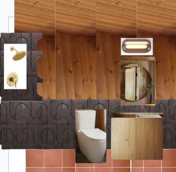 wood paneling ceilings and walls single small vanity simple toilet next to the vanity tiled tub right next to toilet