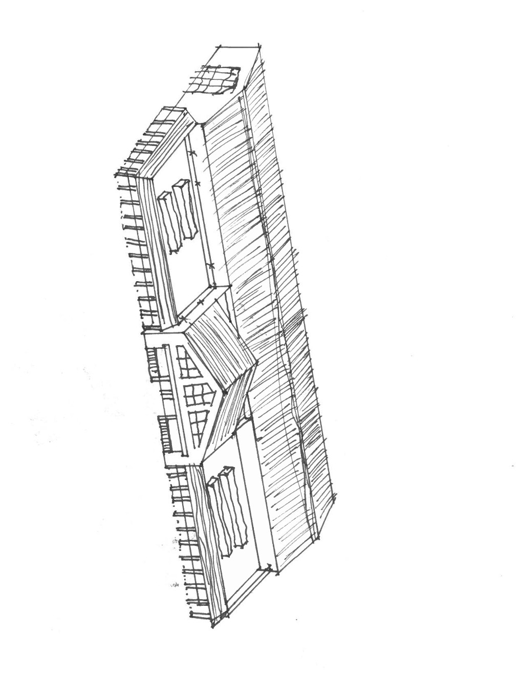 a modern architectural barn with a sleek minimalist design the roof features a gradient from slate gray to soft blue evoking a serene contemporary feel the walls are a clean crisp white contrasting sharply with the dark charcoal gray window frames add soft ambient lighting to create a welcoming atmosphere surround the structure with lush green landscaping and a few vibrant flower beds in shades of lavender and rose pink the scene is set during a golden hour casting a warm golden hue over the entire setting enhancing the natural beauty and harmony of the architecture with its environment