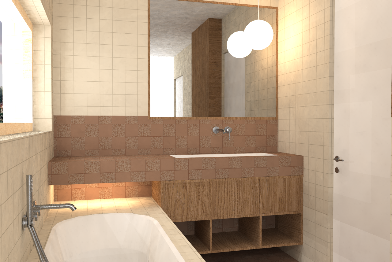 all tiles are matt mirror is glued on the wall and the reflection in the mirror is light tile reflecion