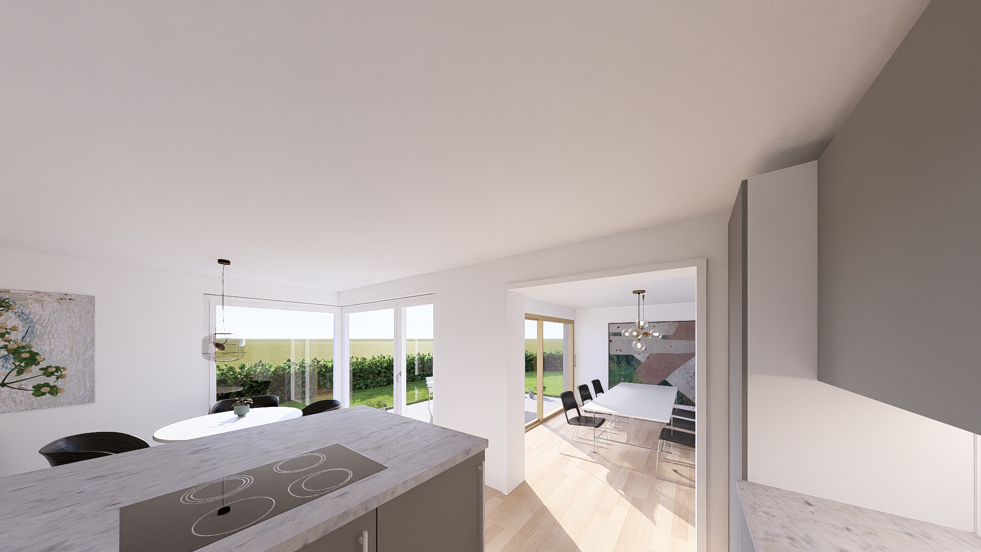 a realistic architecture visualisation with warm bright daylight modern and high quality