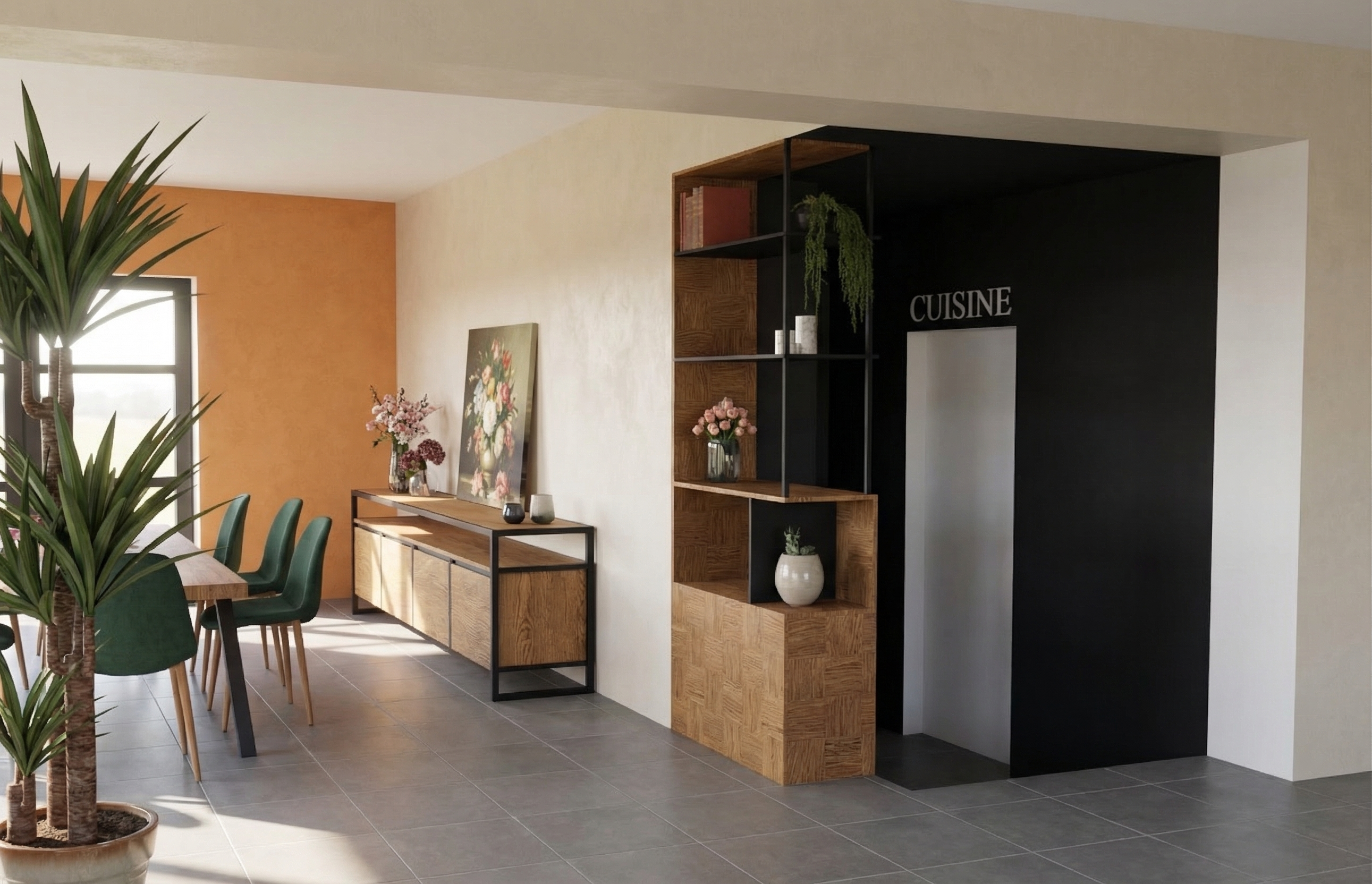 keep all materials colors layout and colors the same make this a photo realistic rendering make the lights look realistic and 3d and make them light outside the window juts put trees keep wall color the same and keep black schluter at the end of shower tile walls