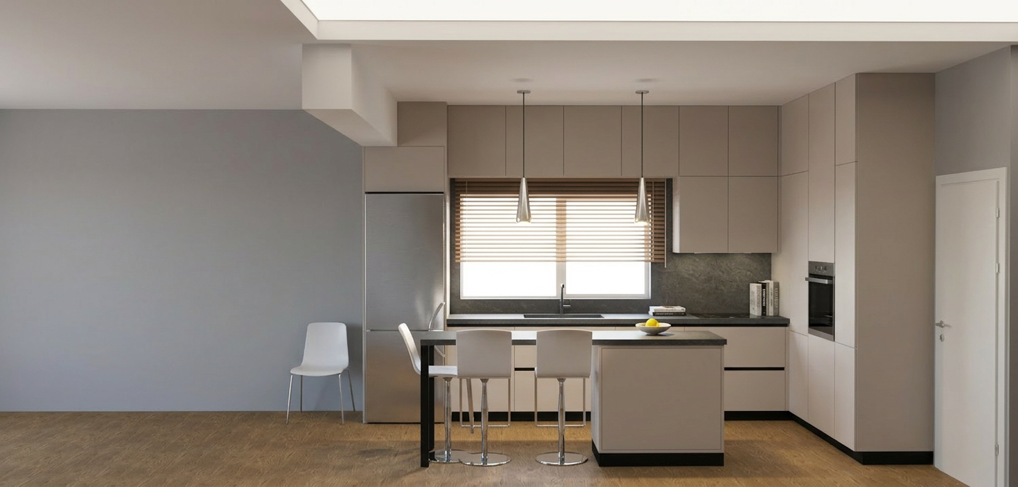 please adjust the perspective so that it is closer to eye level add many trees in the background including a mix of coniferous and deciduous species without obstructing the building place six people naturally distributed throughout the scene the setting should represent a summer day in the netherlands with a lightly clouded sky the grass should appear greener more natural slightly taller and include some small flowers while the grass in the foreground should be removed so that the area remains clean the fa ade material may have a slight shine do not add any greenery on the roof but one of the garage doors may be open and a dutch ambulance should be visible inside the garage
