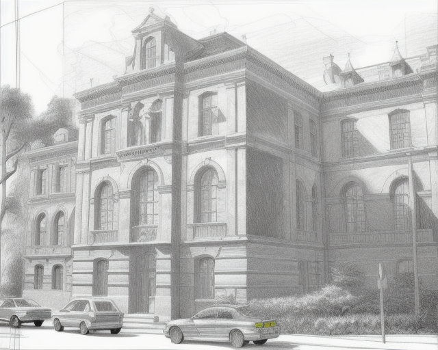 high quality detailed sketch hand drawing drawing simplification reducement of unimportant only main forms cartoon style bright remake black and white only drawing architecture