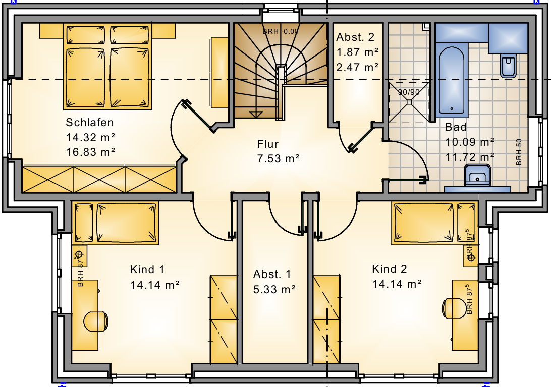 convert this floor plan into a realistic isometric 3d view of a full house show the space from an elevated angle with furniture walls and details visible photorealistic 3d floor plan render based exactly on the provided attic floor plan with mono pitch roof pultdach strict geometry rules keep layout 100 identical do not change walls doors windows do not change proportions sizes or layout all areas must match exact dimensions roof very important pultdach roof must be a mono pitch roof pultdach one sided slope only not symmetrical slope direction must match the plan use anthracite roof tiles only show realistic roof angle and structure do not create a gable roof create a flat roof create multiple slopes texts labels critical keep all room names exactly schlafen kind 1 kind 2 flur bad abst keep all room sizes m place labels centered and clean do not rename or remove labels bathroom very important bathtub shower toilet sink must match exactly no repositioning no additional elements style modern clean high end real estate visualization photorealistic 4k resolution bright daylight warm interior lighting floors bathroom anthracite tiles all other rooms light wood parquet walls pure white interior beds fully dressed with exactly 2 pillows furniture wood or white desks always with chair chairs light colors plants subtle optional stairs standard always natural wood tone no concrete or metal roof slopes critical for attic show realistic sloped ceiling due to mono pitch roof one side higher one side lower integrate knee walls correctly no flat ceiling across entire floor lighting mix of daylight and warm interior lighting soft shadows cozy but realistic negative rules no wrong roof type no symmetrical roof no flat roof no layout changes no scaling errors no missing labels no invented bathroom elements no incorrect slopes use the same furniture as shows on the plan do not change the orientation of the floorplan