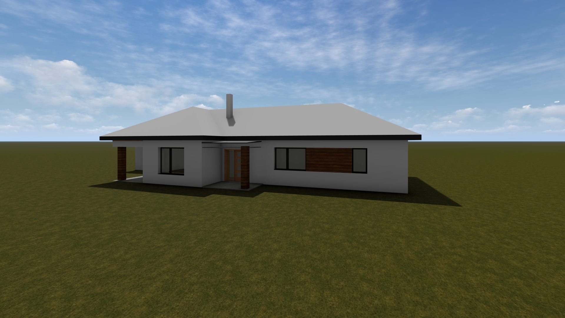 render a photorealistic 3d perspective of this house in a hungary hyper realistic 8k cinematic lighting serene atmosphere photorealistic textures keep model geometry the same windows doors roof walls garage door pavement driveway reference the current material style just enhance them make a lush vegetation that looks native to hungary alf ld do not change the view only enhance the current materials and make the landscape nicer vegetation detailed textures in the wood siding and glass reflections and a vibrant clear sky with light atmospheric depth render in hyper realistic architectural visualization quality 8k resolution roof minimalist anthracite concrete tile facade a mix of smooth white mineral plaster horizontal walnut wood slats windows antracit aluminium minimal