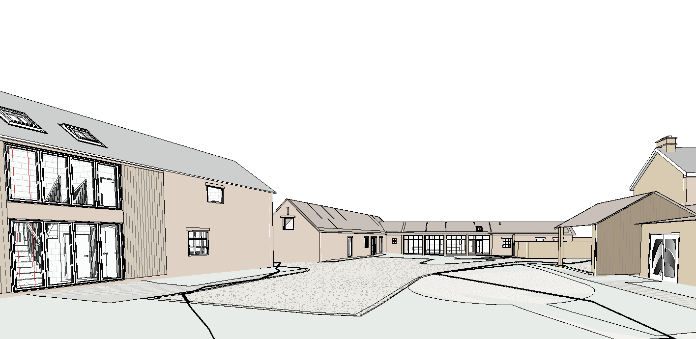 rural buildings with a mixture of buff brick and traditional red brick set within a rural landscape in the spring