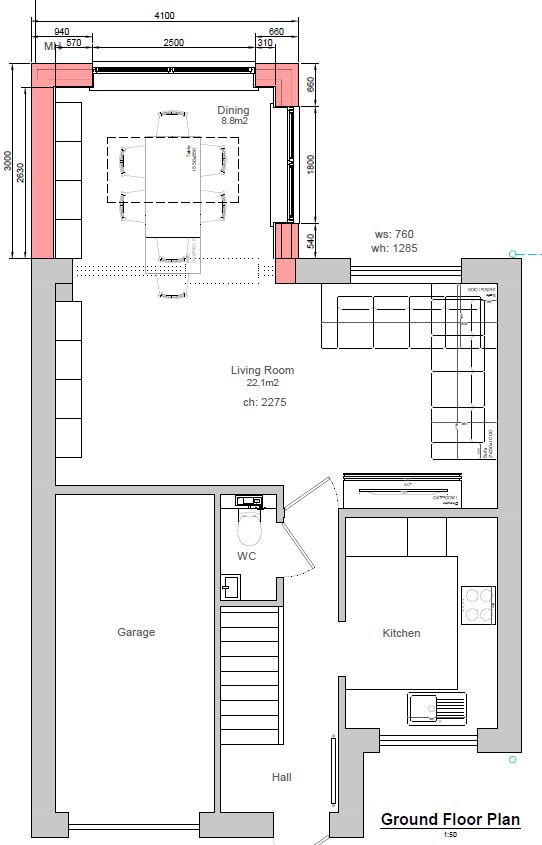 convert this floor plan into a realistic isometric 3d view of a full house show the space from an elevated angle with furniture walls and details visible create a modern and cozy ground floor interior layout with a seamless open plan design the living room is spacious and should have a comfortable l shaped sofa in a soft light grey fabric and a plush rug in muted earth tones for warmth use large windows for abundant natural light adding sheer white curtains for a soft touch the dining area should feature a wooden dining table in a warm oak finish surrounded by elegant high backed chairs in a complementary light beige highlight the space with a contemporary chandelier that adds a touch of elegance the kitchen is modern and sleek with white cabinetry and a marble countertop include stainless steel appliances for a professional look add under cabinet lighting for a bright and welcoming atmosphere the walls throughout the space should be painted in a soft neutral cream color to enhance the feeling of openness while the floor has a polished light oak finish for continuity overall maintain a warm and inviting atmosphere incorporating indoor plants for a touch of nature and greenery use the same furniture as shows on the plan do not change the orientation of the floorplan