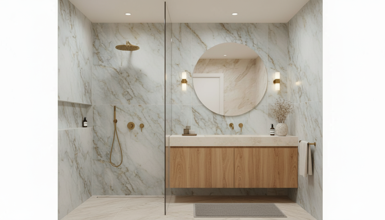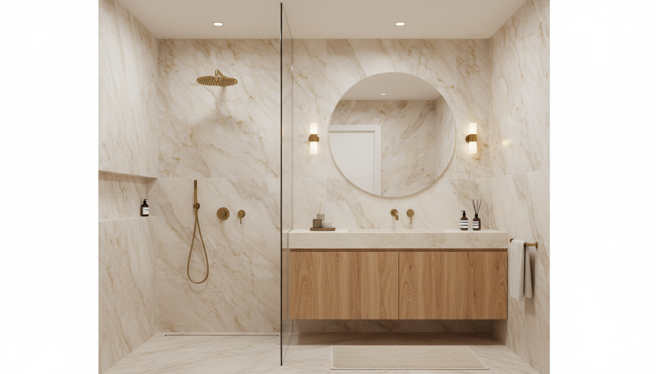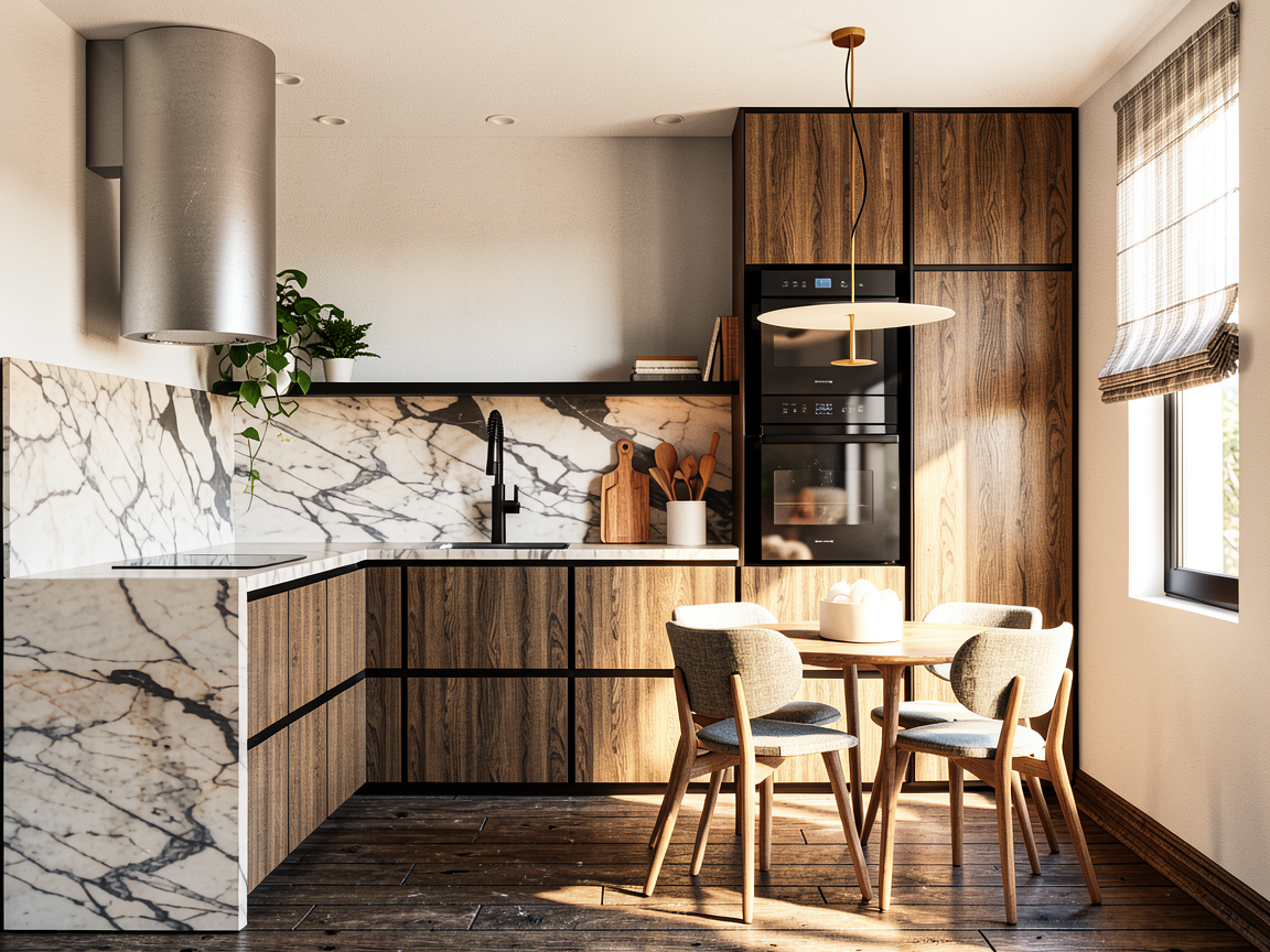 it will have a modern luxurious style with sahara colors and some dark wood tones and travertine marble like walls