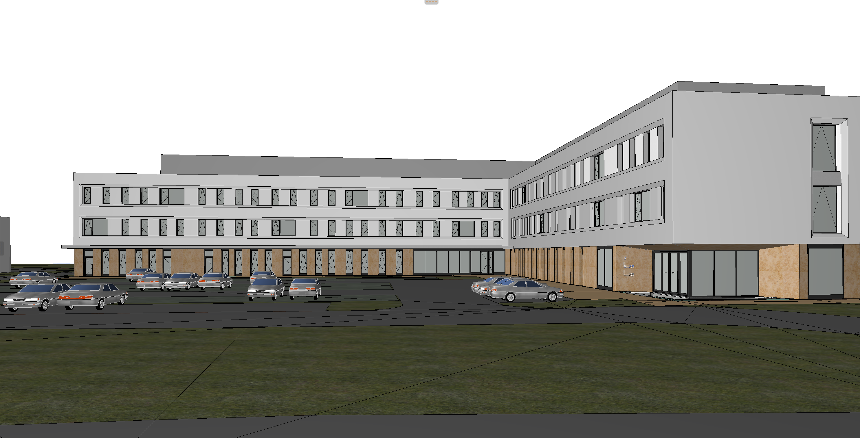 add people white facade is clean grass darker